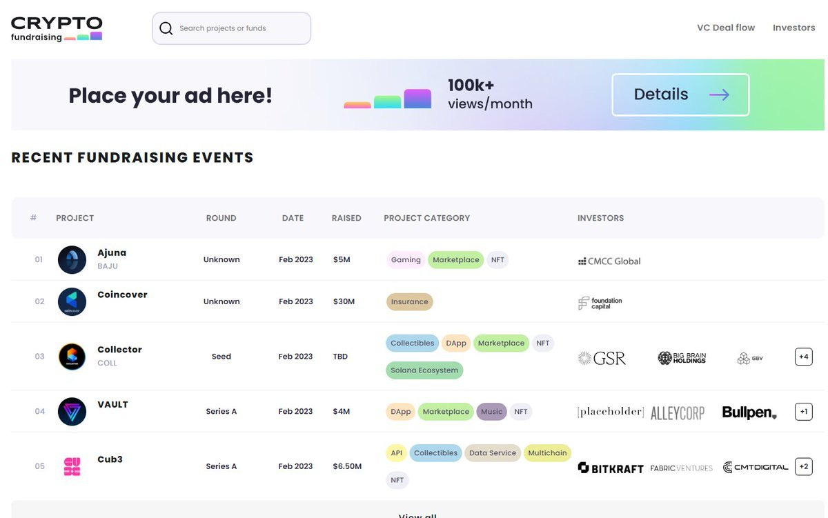 🔹 @Crypto_Dealflow 有一個幣圈項目募資消息的 Telegram 頻道