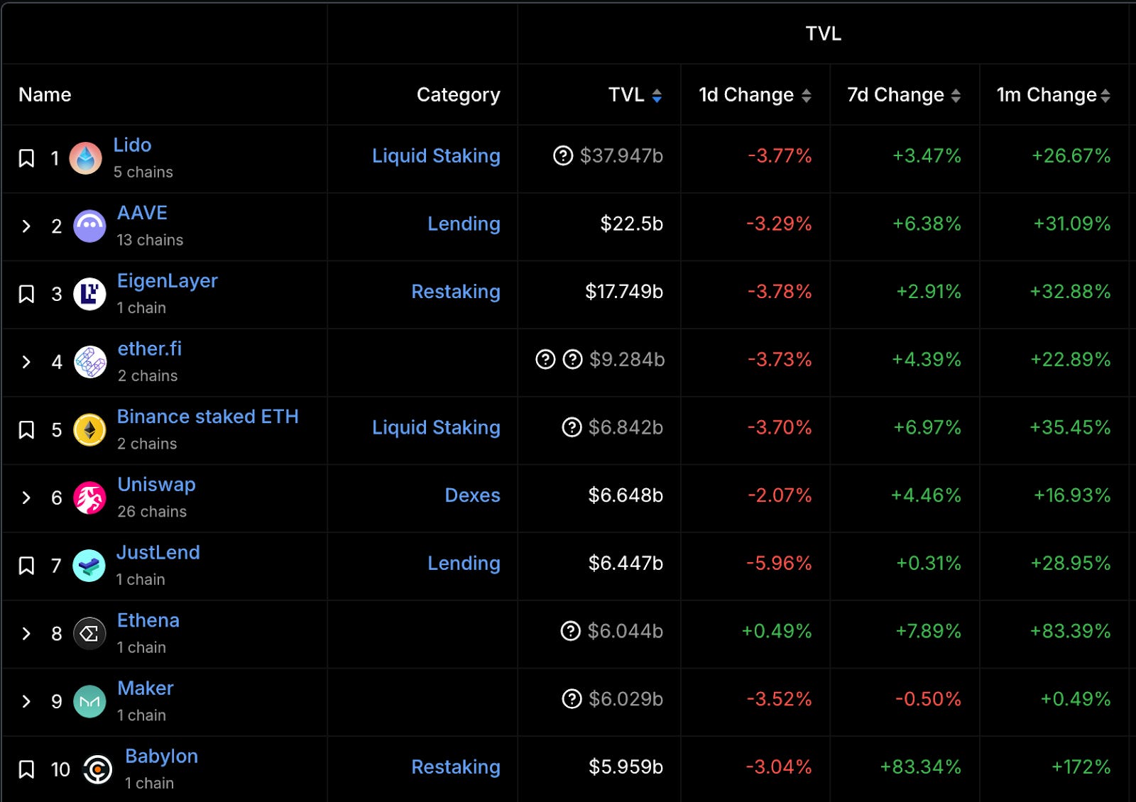 Source: https://defillama.com/?minTvl=10000000&maxTvl=