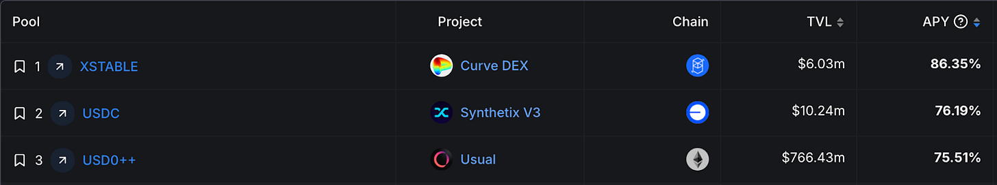 USUALx APY:上線之初高達 28,000%,截稿前已趨緩至 10,000%,為早期參與者帶來高收益,但長期依賴 $USUAL 價格穩定性。
