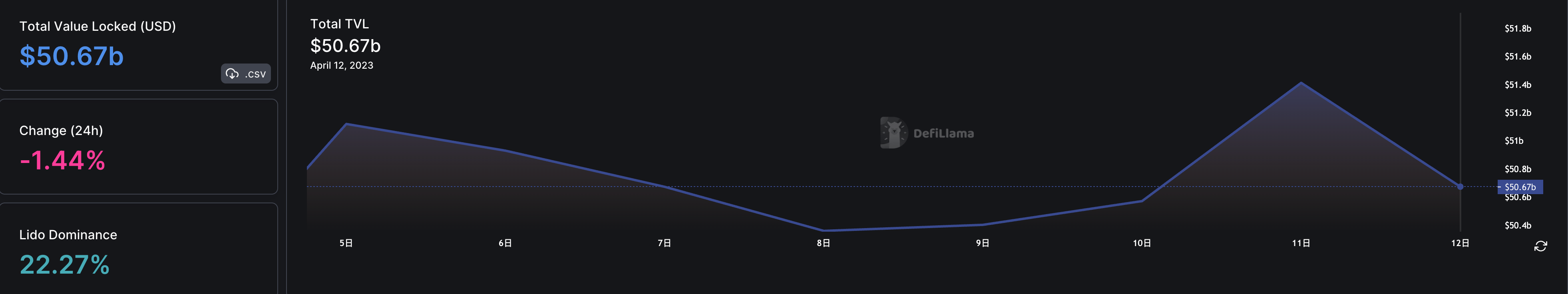 明顯可以看到本週市場整體略為下跌,可能是上海升級的預期心理提前 price in,ETH 鎖倉量方面並無太大變化。