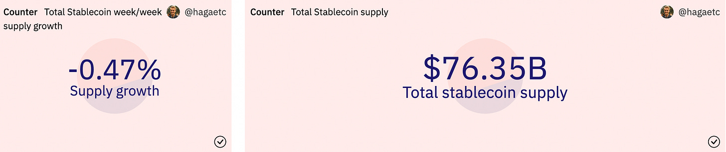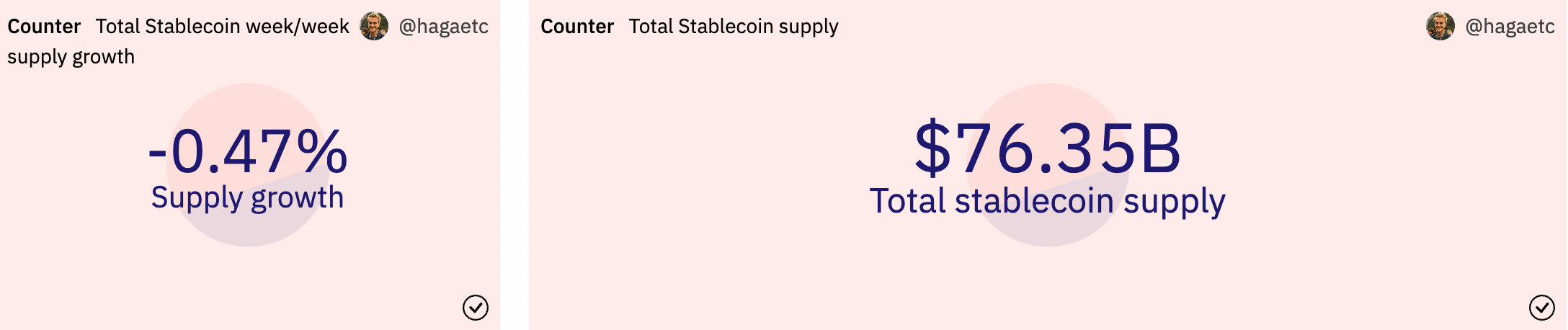 穩定幣供給情形:本週穩定幣供給持續減少。