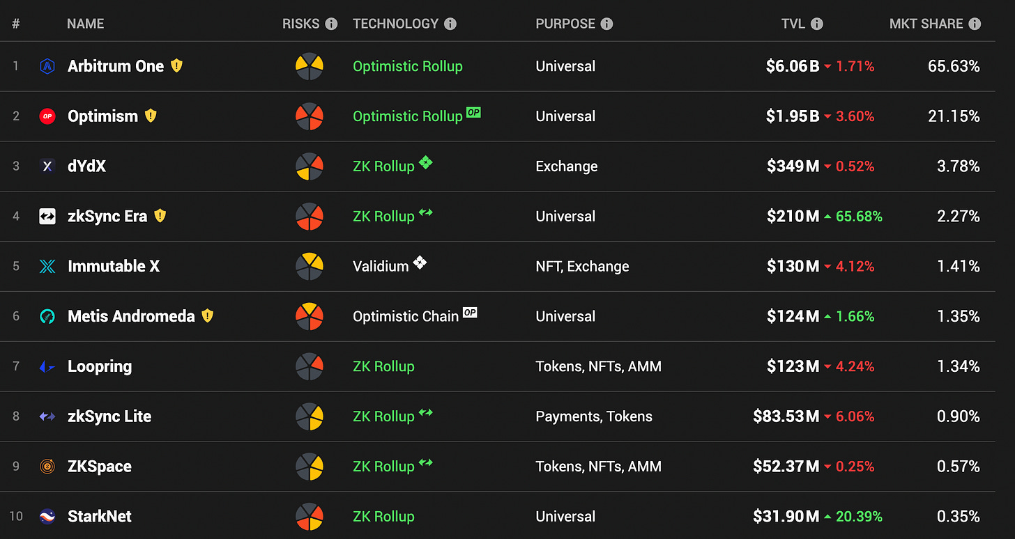 目前表現較好的 L2 仍是空投概念相關,zk-Rollups 概念逐漸攻佔 L2 排行榜。