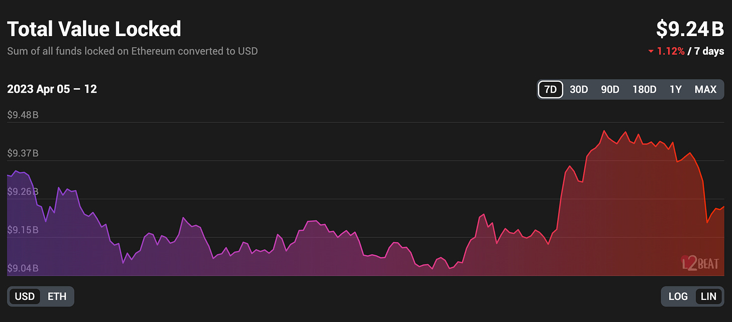 正如同上週週報所說的:L2 熱潮不再,鎖倉量無論是U本位或是以太本位都呈現下跌趨勢。