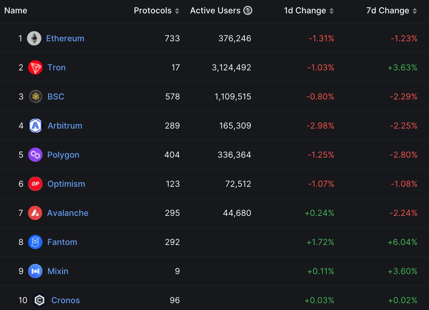 前10大公鏈/ Layer 2 總鎖倉量變化: