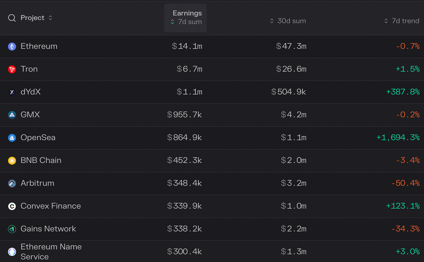 Opensea 在本週有著爆量的增長,原因是推出 OpenSea Pro(Gem V2)NFT 交易聚合器,提供使用者更好的體驗。