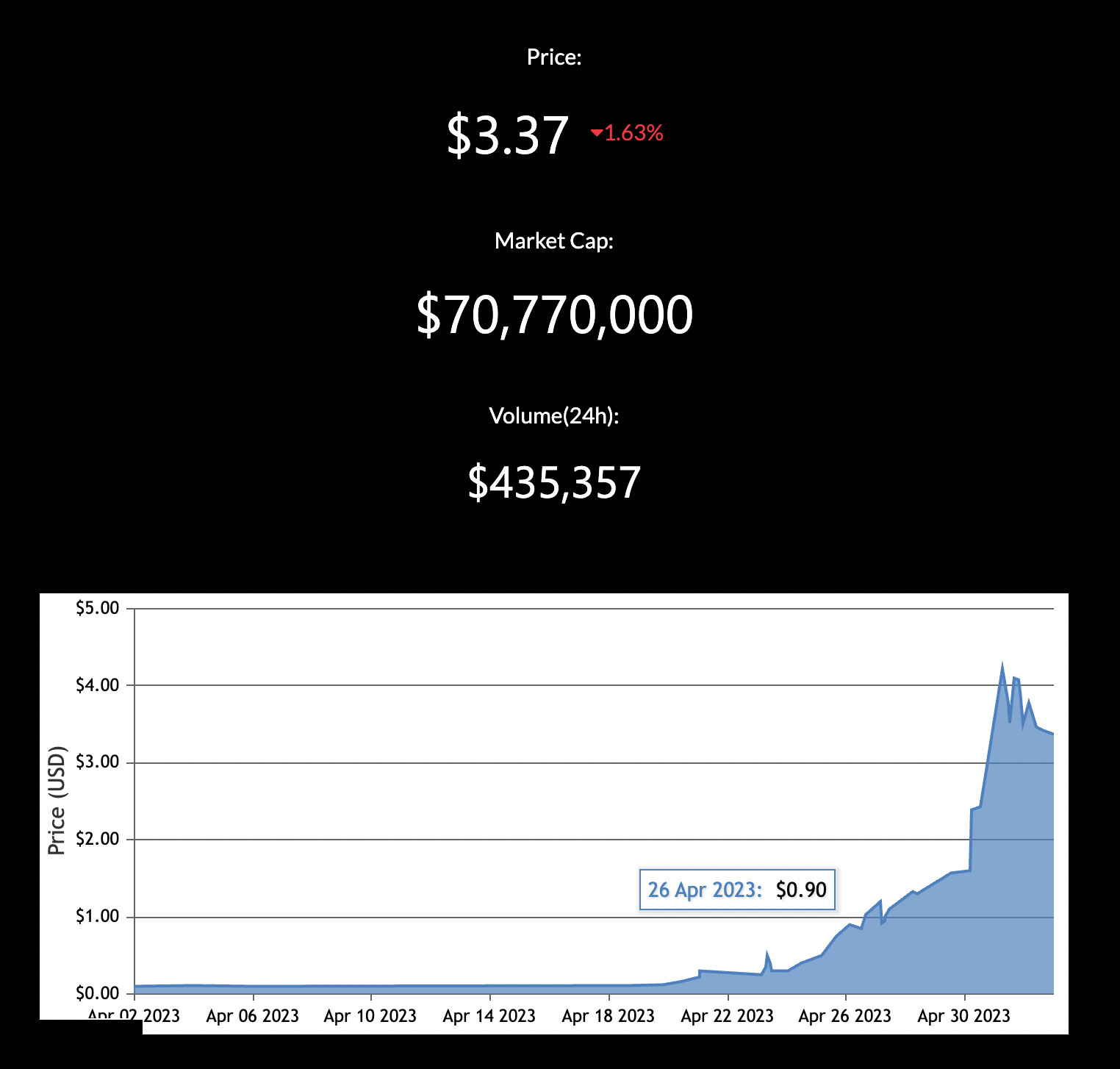 如此活躍的火熱程度也反映在幣價上,$ordi 作為第一個 Brc-20 標準的 Ordinals,過去一個禮拜的價格更是暴漲了300多倍。0.9 → 3.37