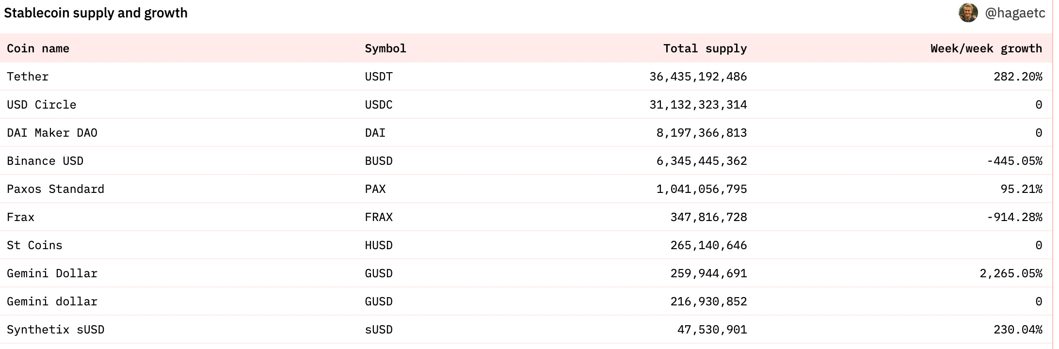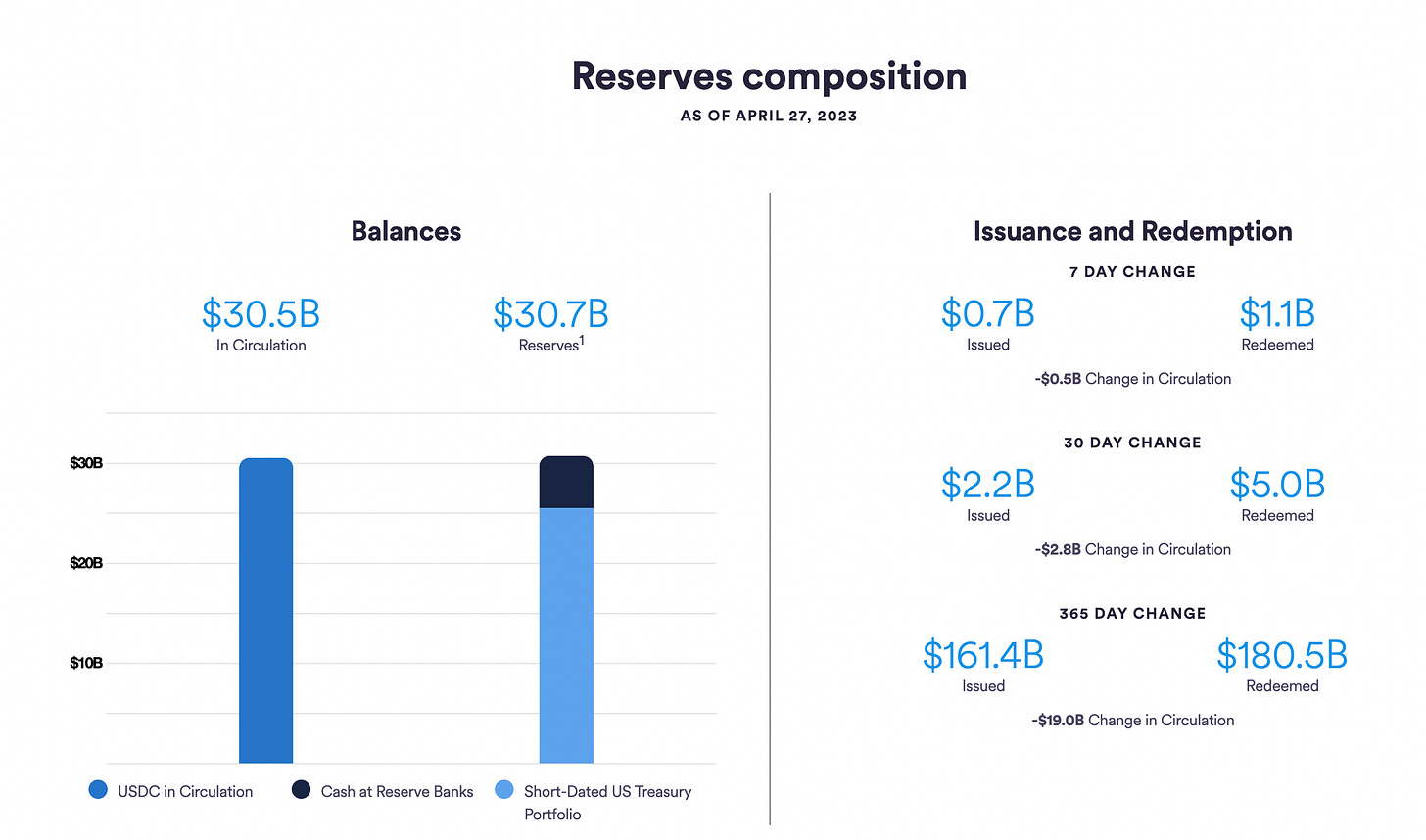 USDC 過去一週流通量減少5億