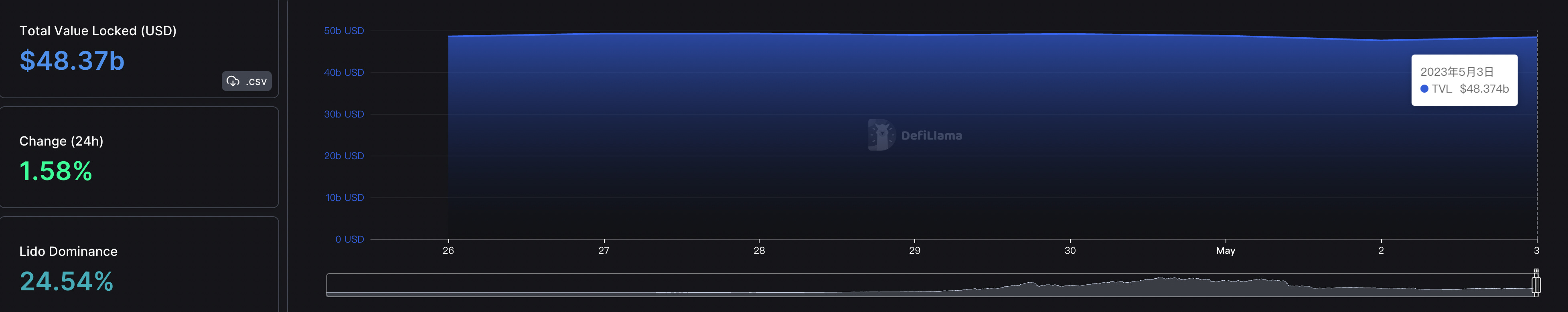 本週整體 DeFi 總鎖倉量變化:-0.5.%,整體市場波動極低