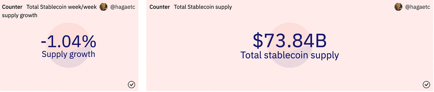 穩定幣供給情形:本週穩定幣供給持續減少,過去一週 USDC 流通量減少5億美元
