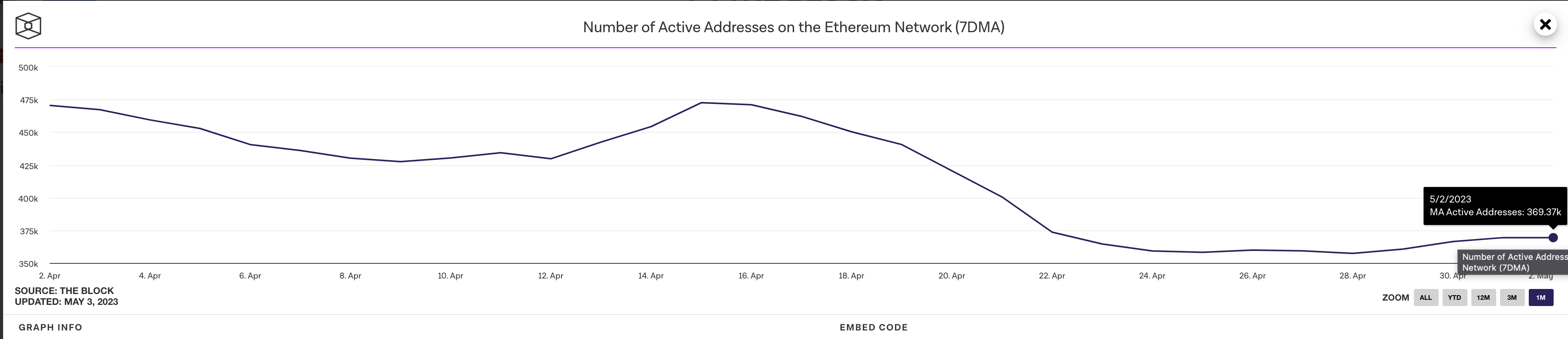 以太坊每日活躍地址數:36.9萬,較上週微幅上漲