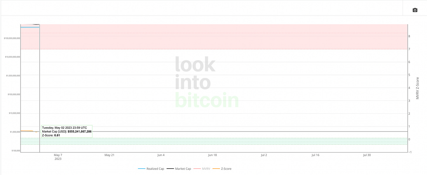 比特幣 MVRV-Z 指標:0.61,微幅上升(上週0.59,小於1買入)