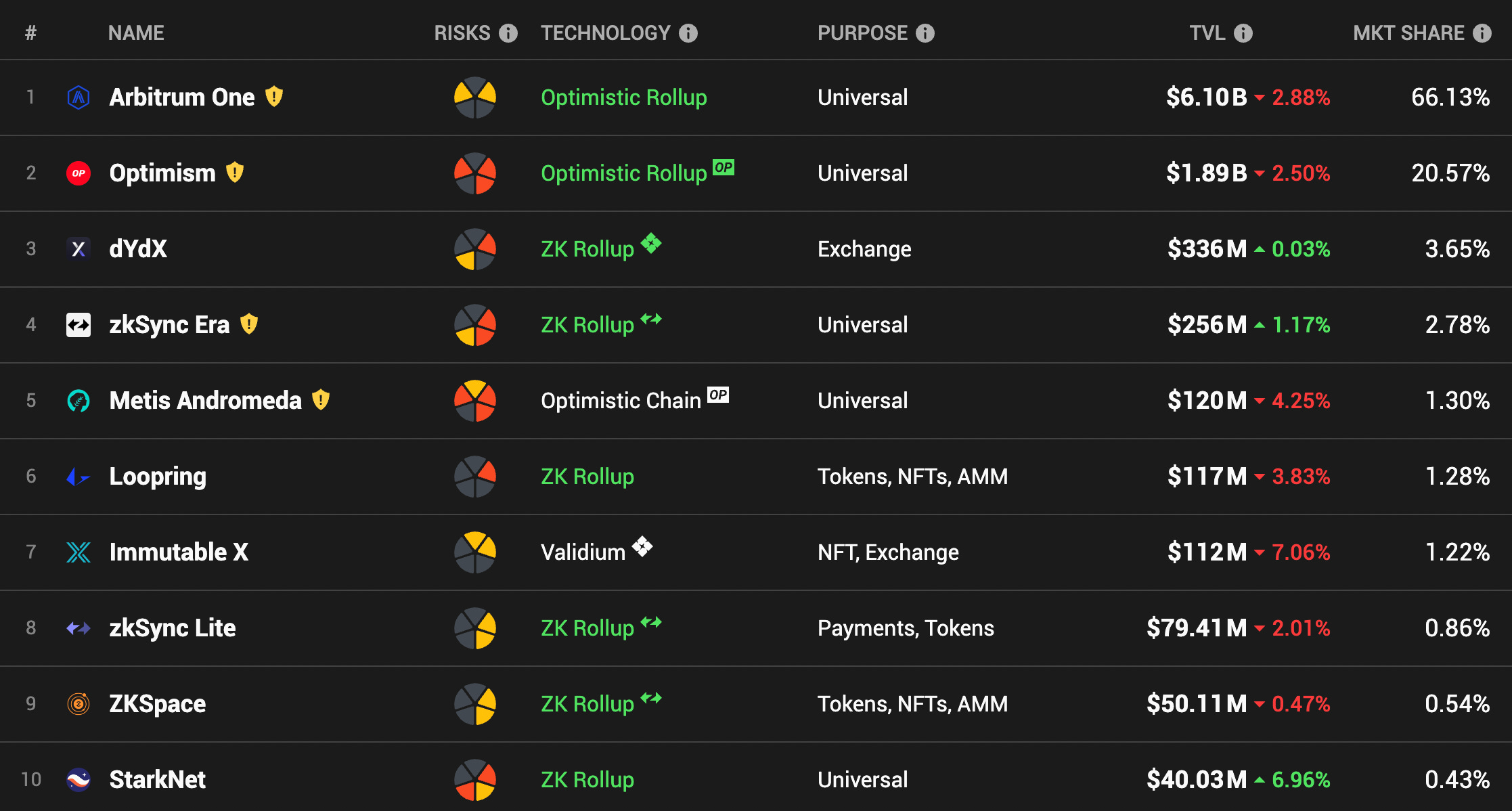 Layer 2 賽道變化: