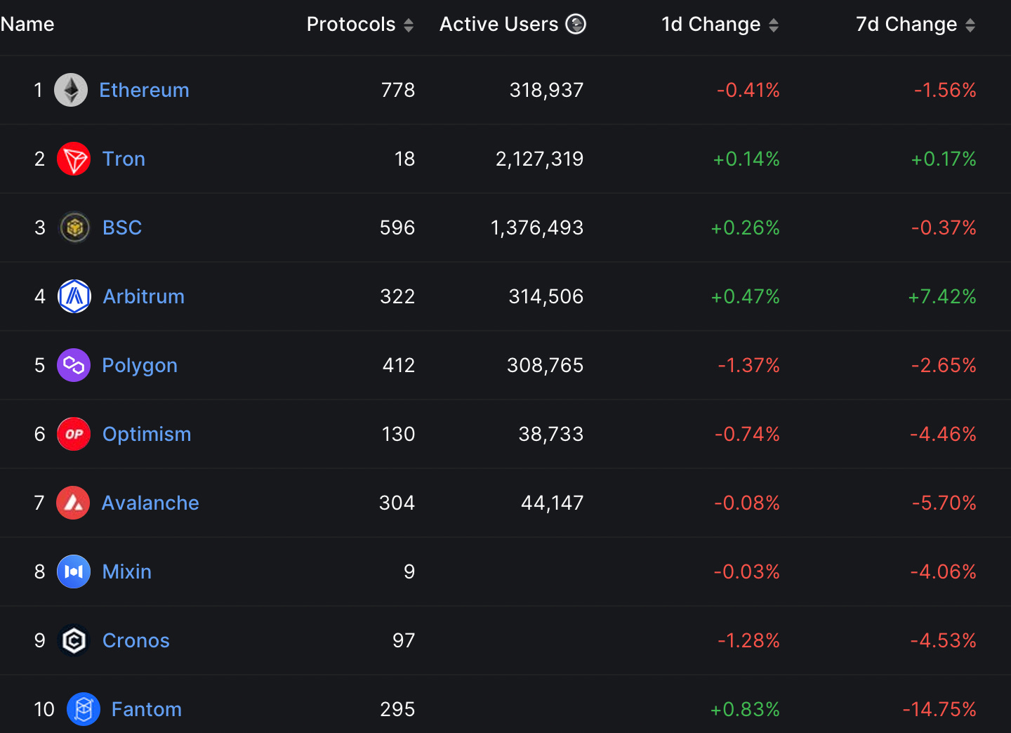 如同上文所呈現的,前10大公鏈鎖倉量波動低,DeFi 無熱點