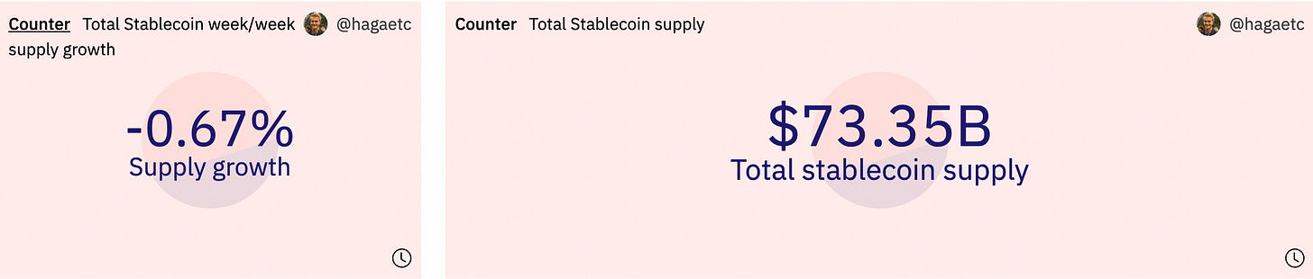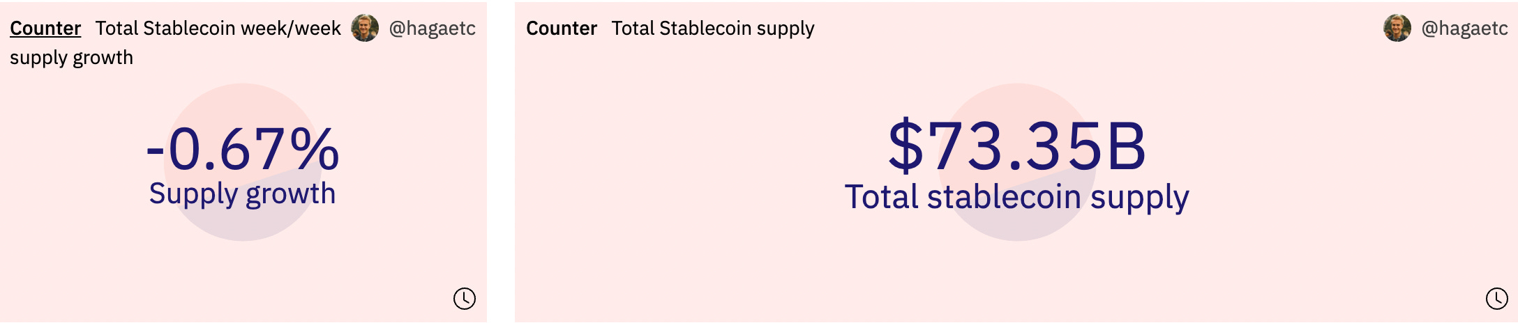 穩定幣供給情形:本週穩定幣供給持續減少,每週持續微幅減少。