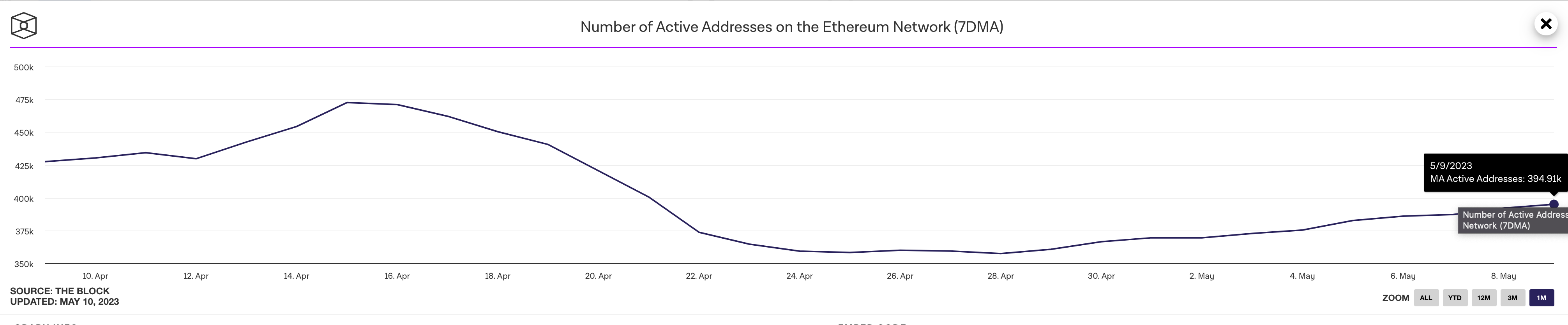 以太坊每日活躍地址數:39.4萬,較上週微幅上漲