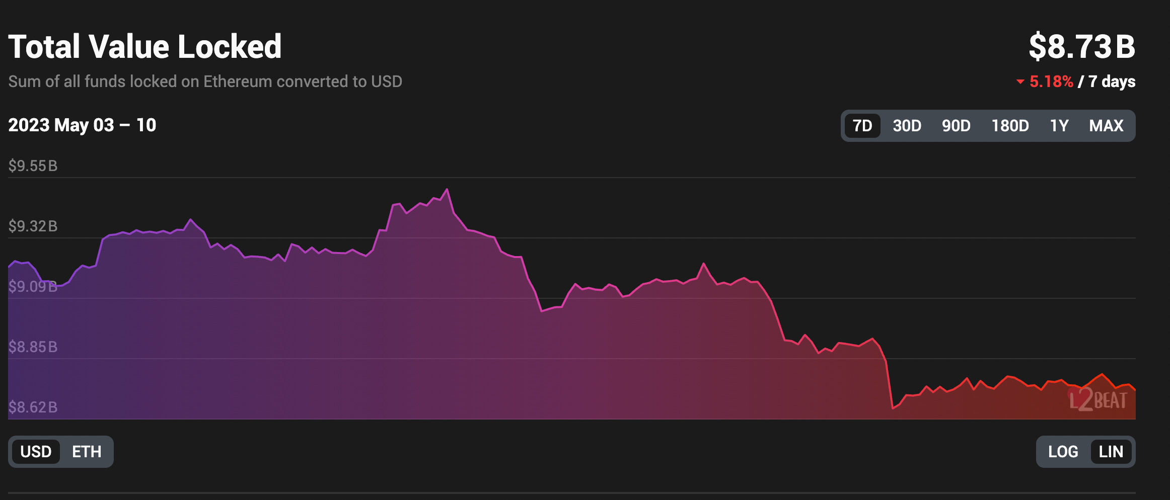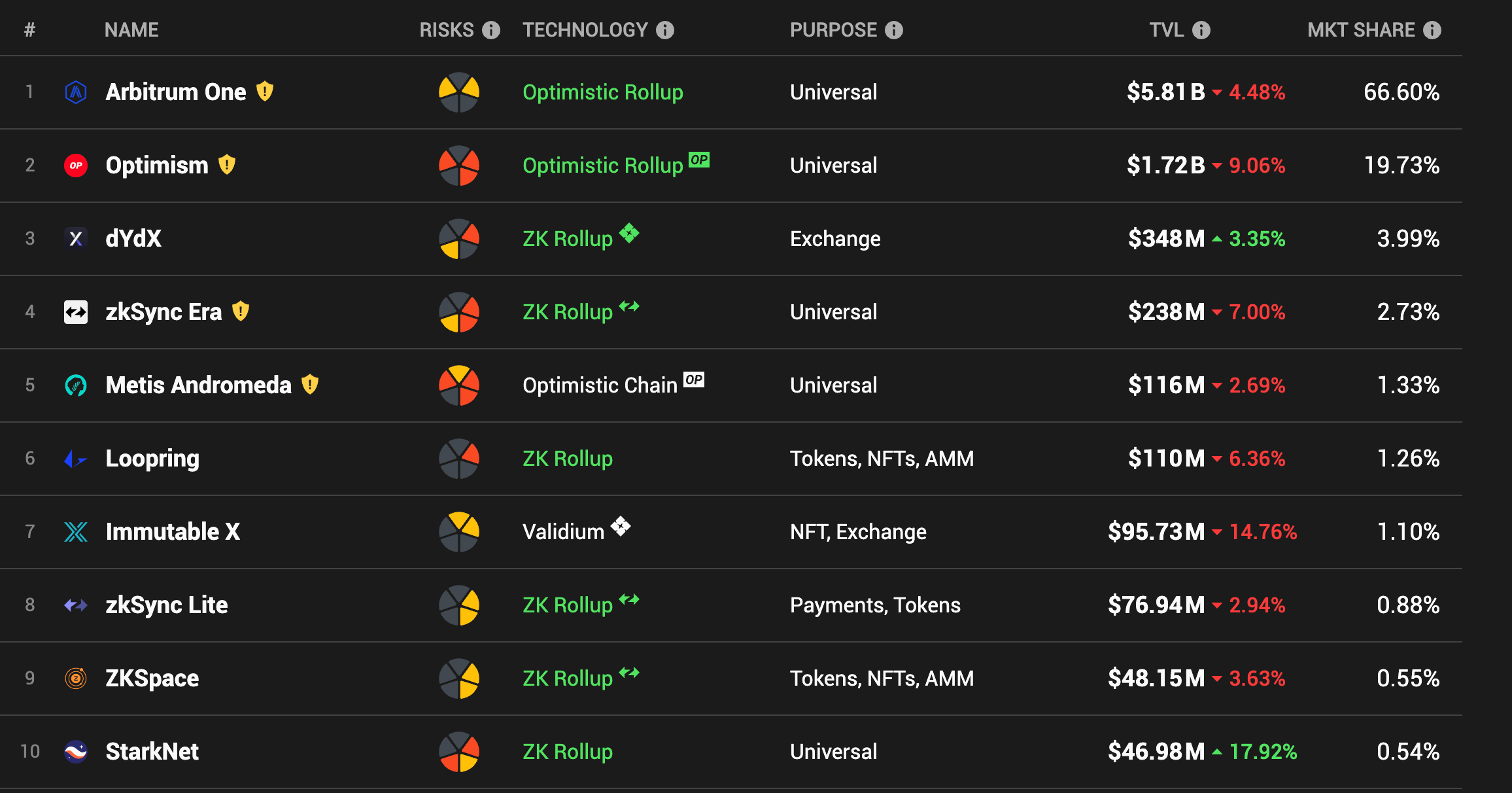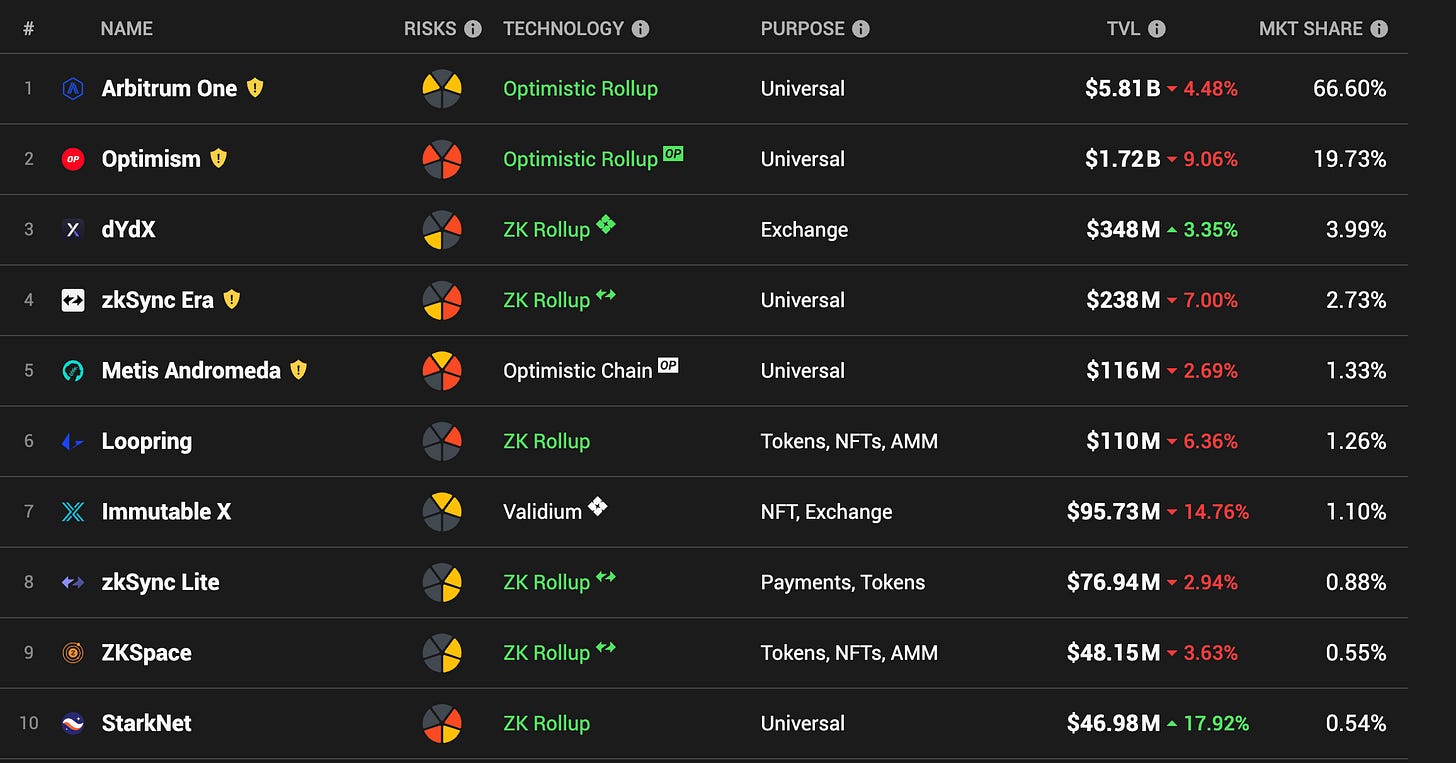 前10大公鏈/ Layer 2 總鎖倉量變化: