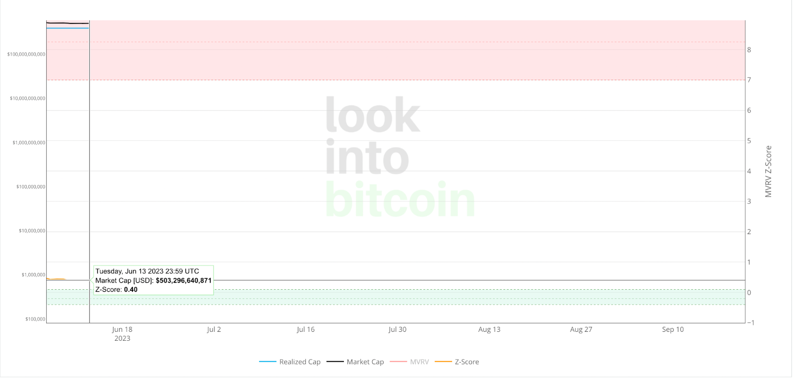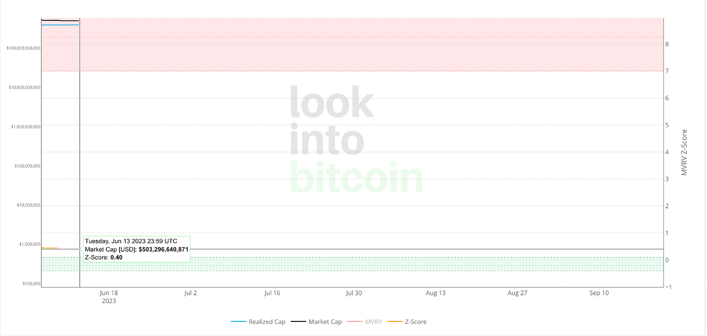 比特幣 MVRV-Z 指標:0.4,幾乎與上週持平(上週0.39,小於1買入)