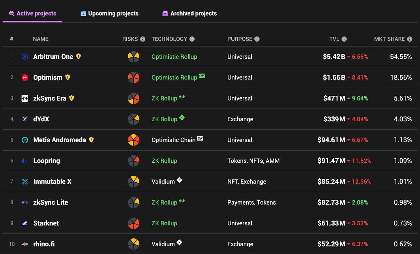 Layer 2 賽道變化: