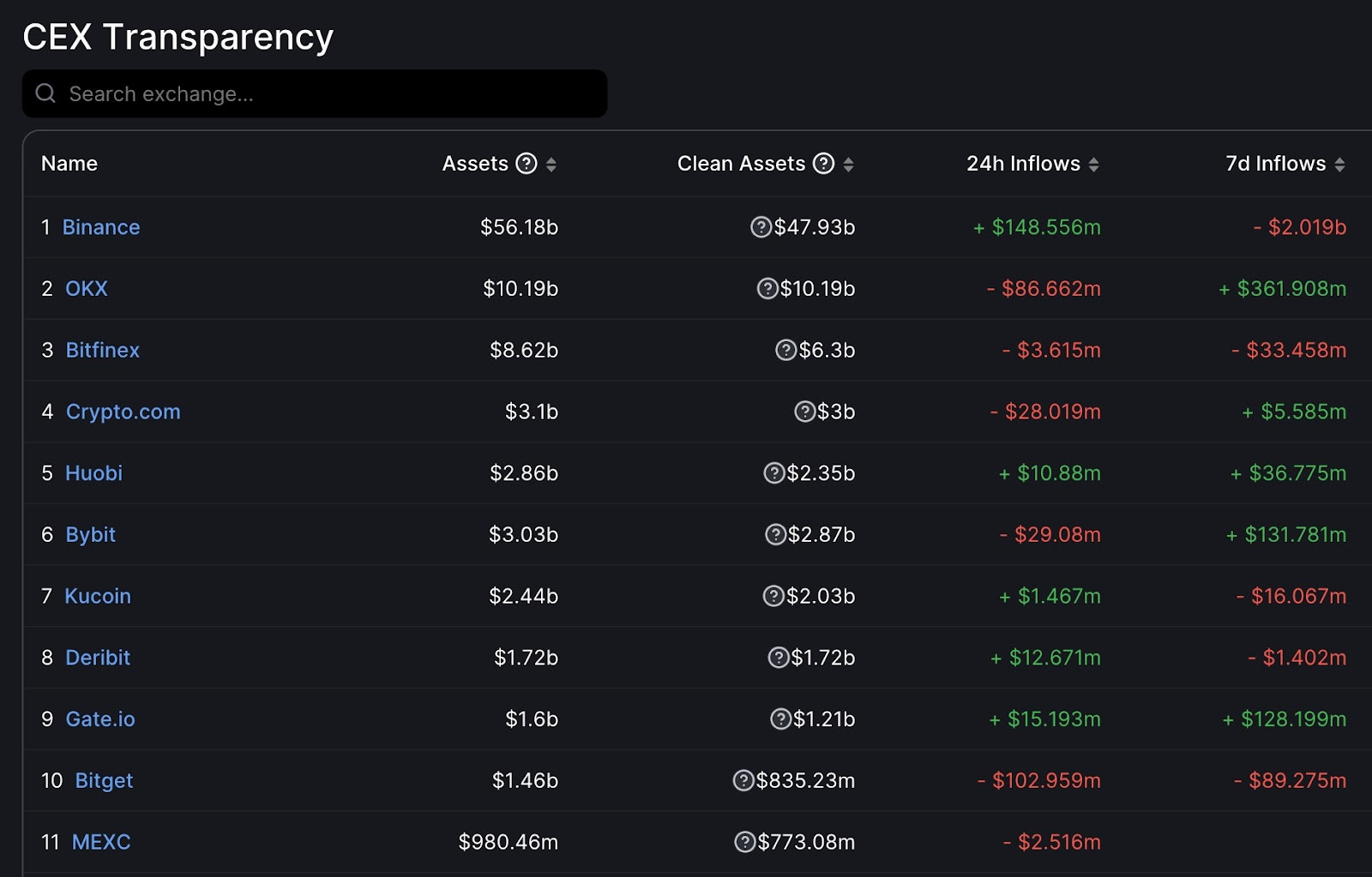CEX 資金淨流入/出觀察: