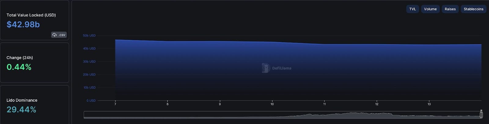 本週整體 DeFi 總鎖倉量變化: