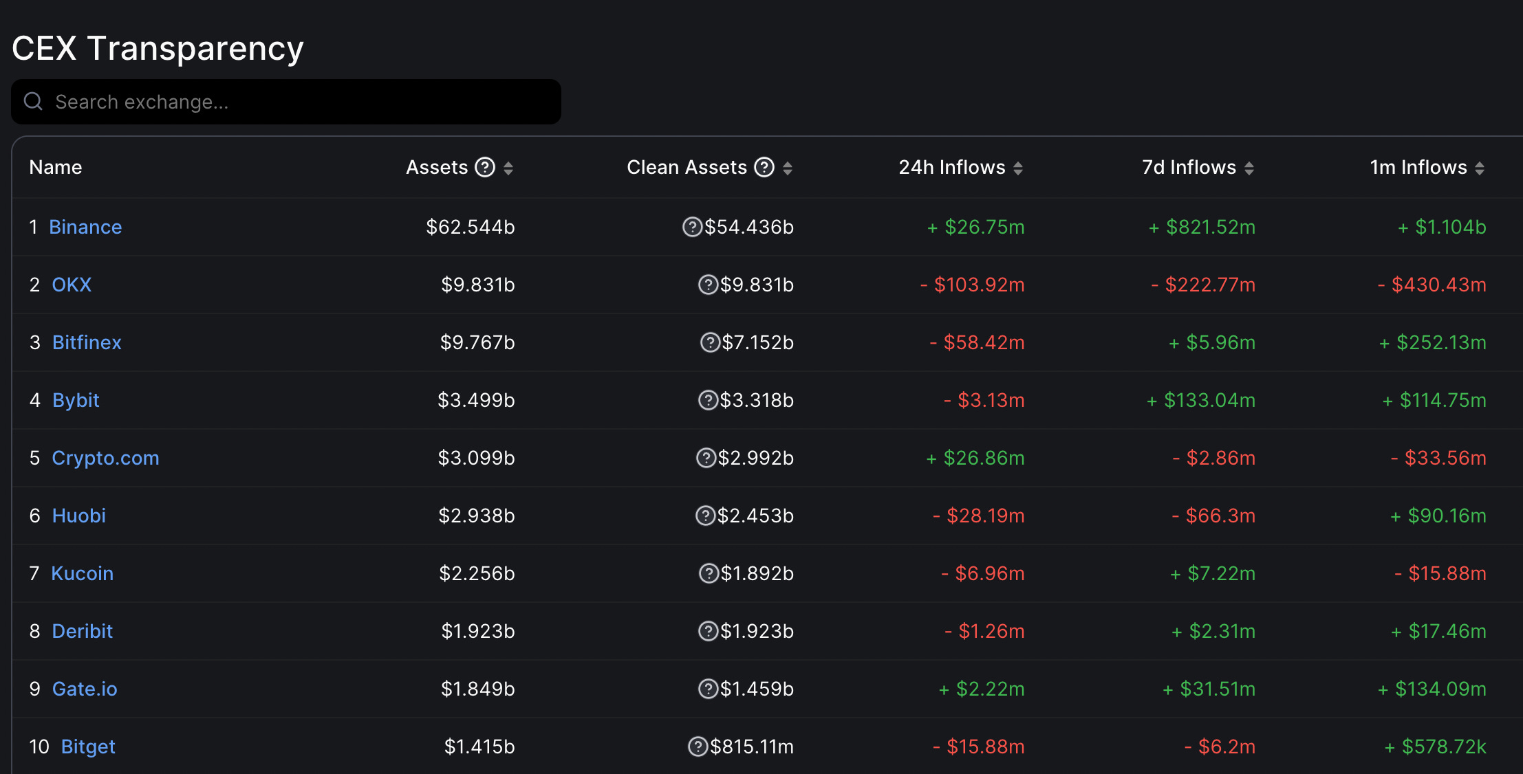 CEX 資金淨流入/出觀察: