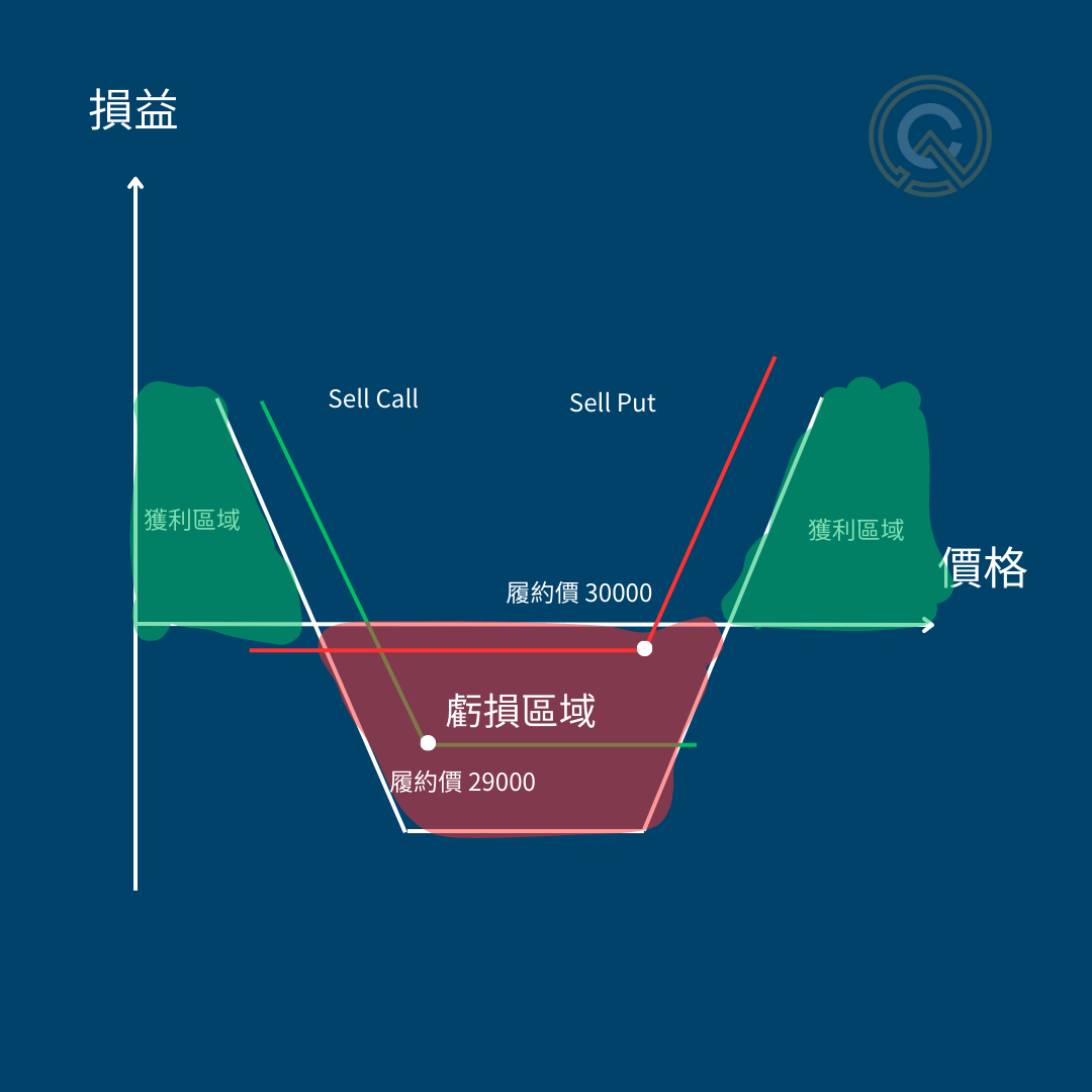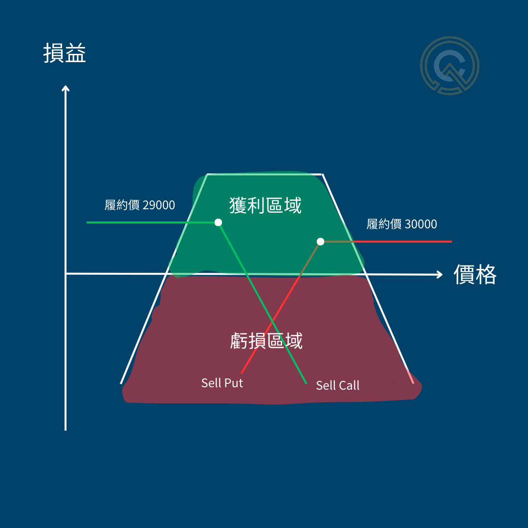 雙賣策略的意思是:預期幣價會突破區間範圍,使用 Buy Call+Buy Put。