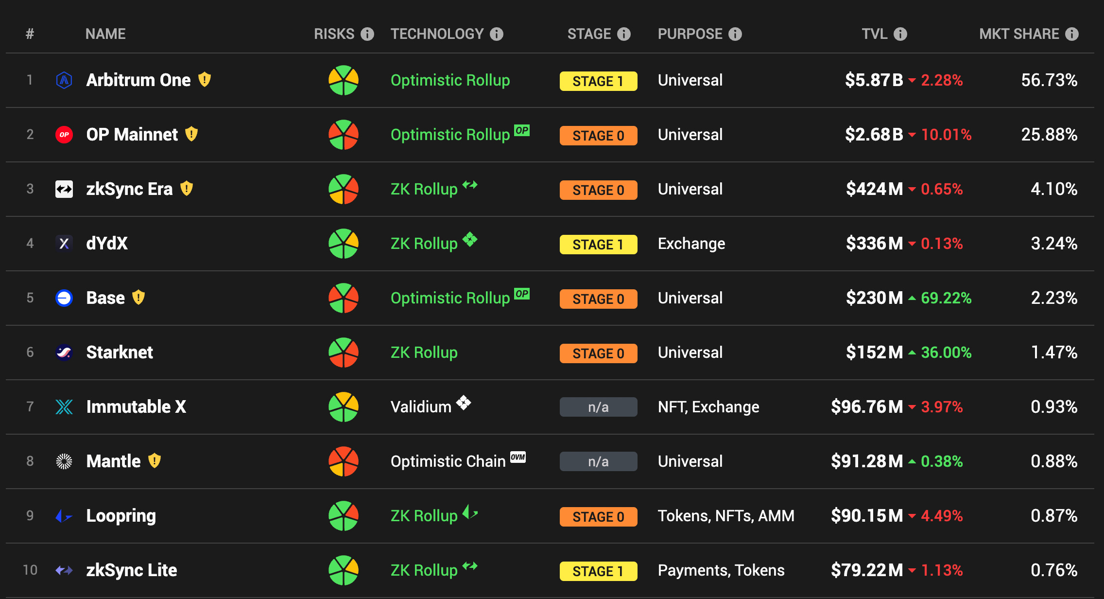 Layer 2 賽道變化: