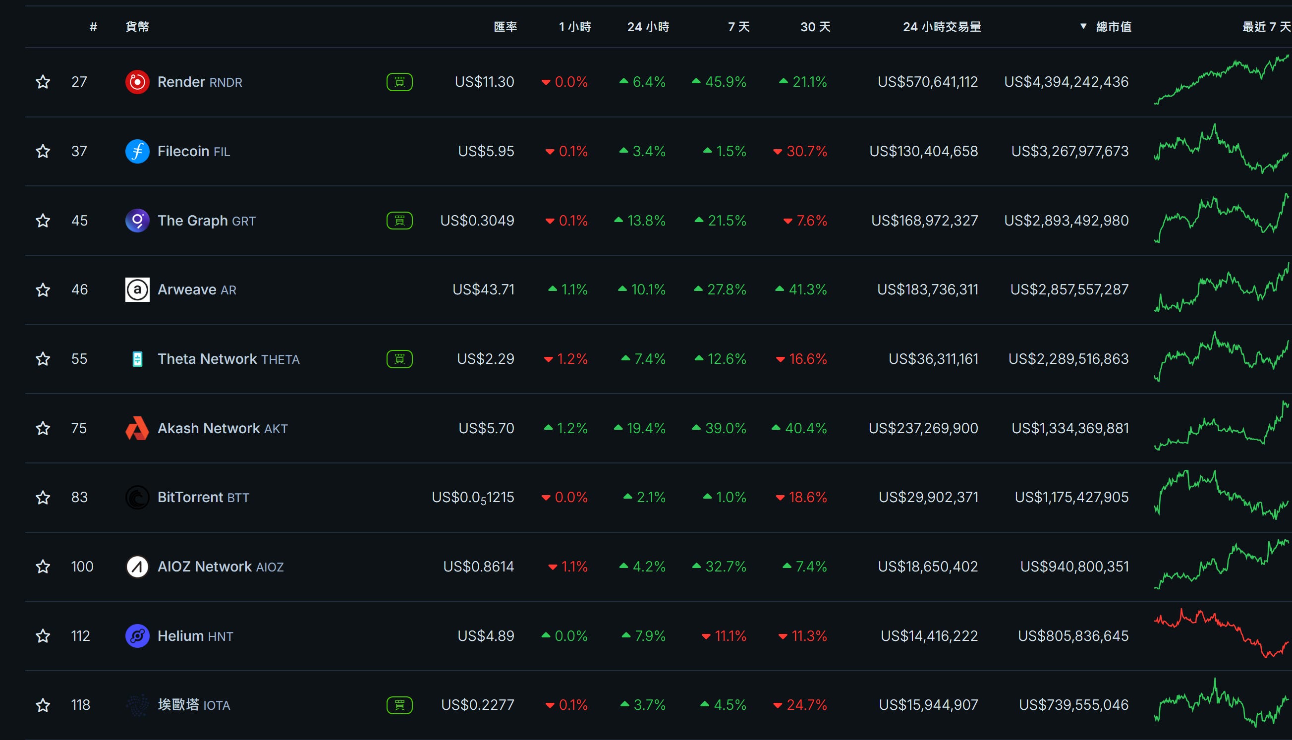 本週隨大盤復甦,DePIN 前十大項目也回漲。龍頭 $RNDR 是蘋果VR 的合作夥伴,本週 Apple 進行新品發布會,可能引起市場對於 $RNDR 的關注。