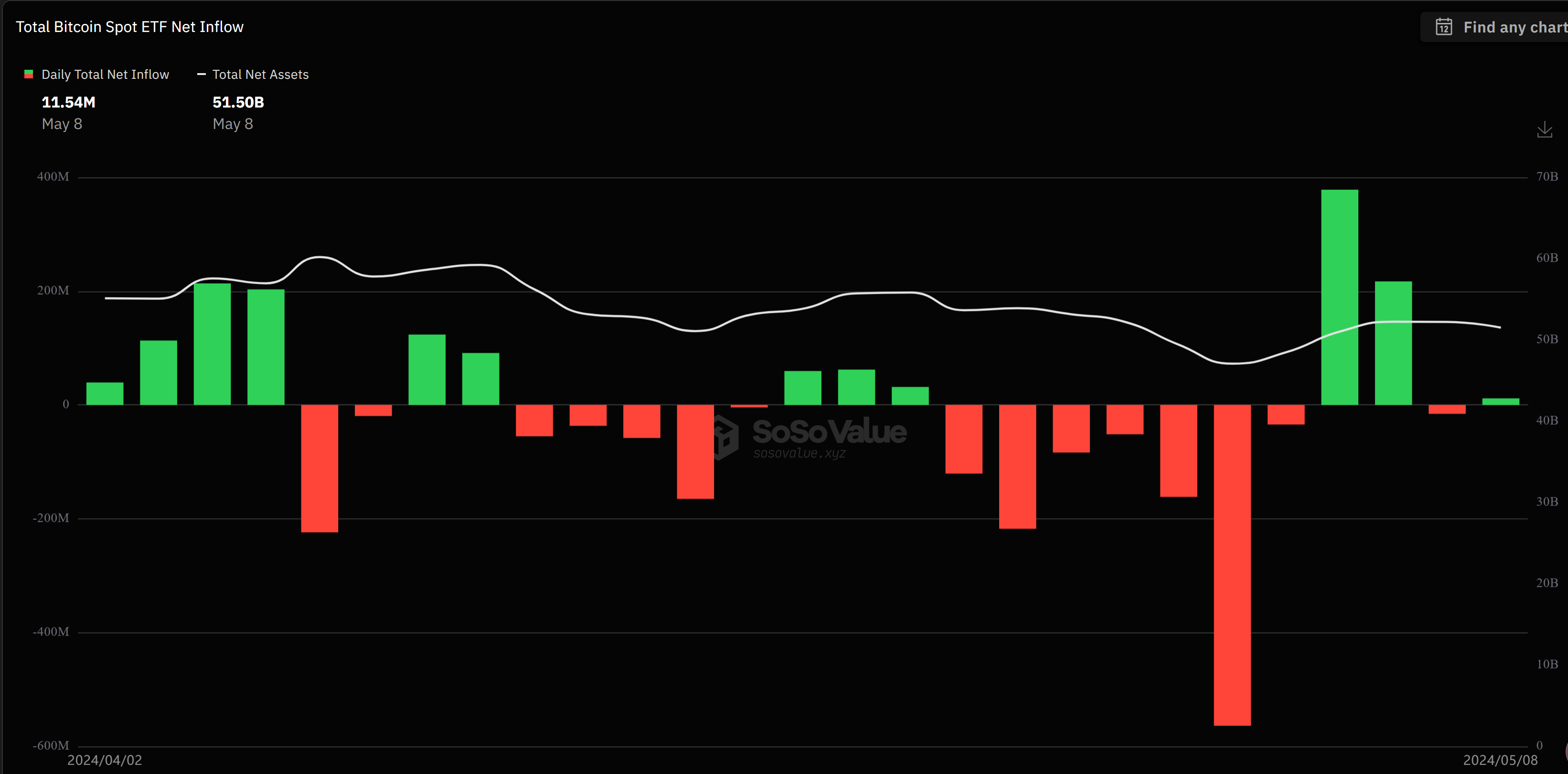 BTC ETF 過去一週流入表現良好,在遭遇歷史最大單日淨流出之後,又經歷了近一個月最高額流入。整體來看淨流入額和幣價高度相關,但此數據以日為單位的變化較難預測,僅可作為行情參考,很難當作預測工具。