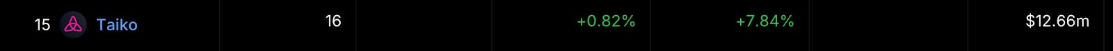 Taiko 逆勢成長了 7.84% 原因在於 Uniswap V3 的引入,目前生態中僅有跨鏈、DEX、借貸項目,DeFi 發展還不夠成熟,是埋伏潛力項目的好機會。