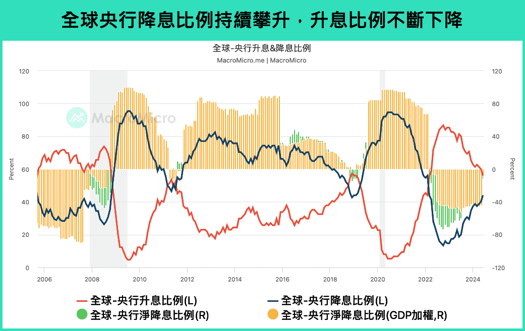 根據財經M平方 MacroMicro.me,目前全球升息比例不斷下降、降息比例不斷提升,即將迎來黃金交叉,可以期待降息為 Crypto 市場帶來更高的投機性以及資產價格推升。