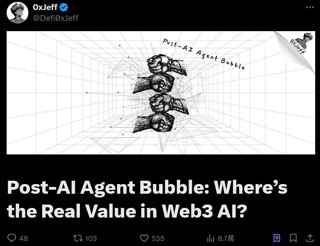 內容精選 - AI Agent 泡沫後的去中心化 AI 趨勢 by 0xJeff