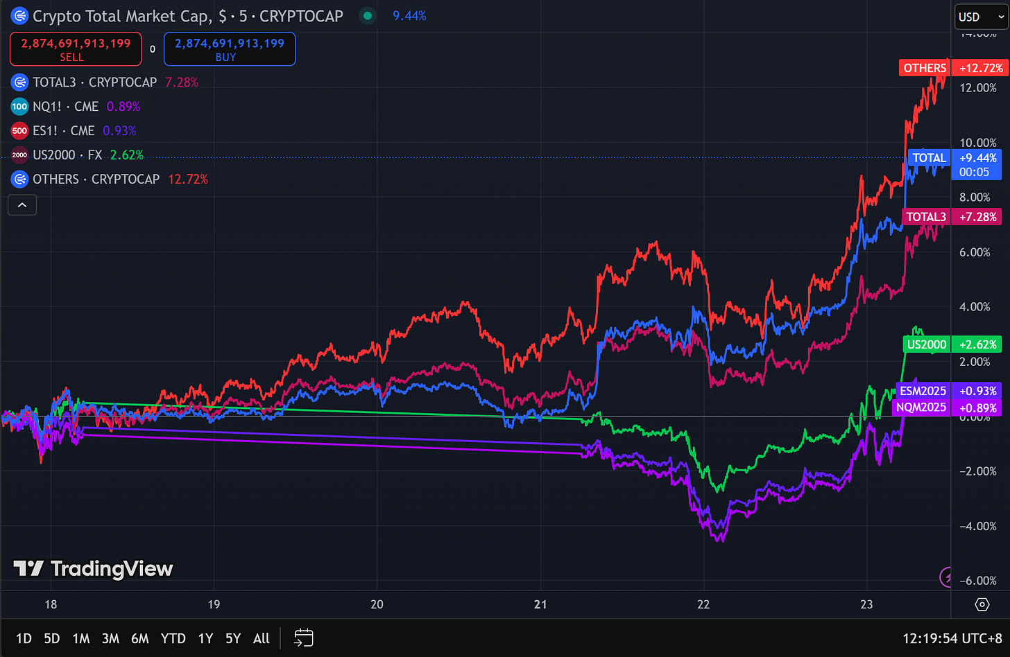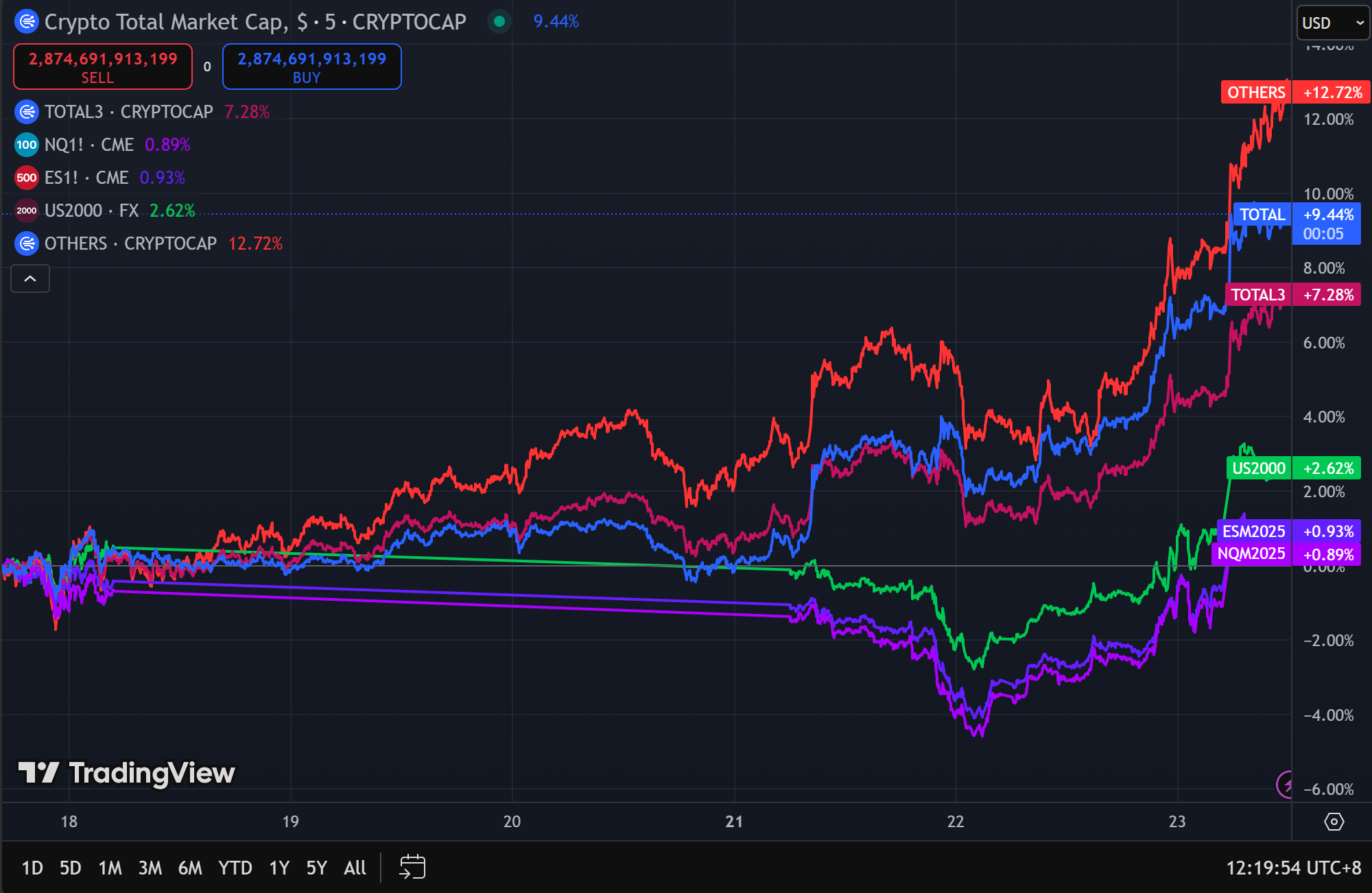值得注意的是,$ETH 是這次漲幅最多的 ( 14% ) 相較 $BTC ( 6% ) 及 $SOL ( 8% ),可以看出資金是否回流 ETH 生態,建議密切關注後續政策來做投資上的動態調整。