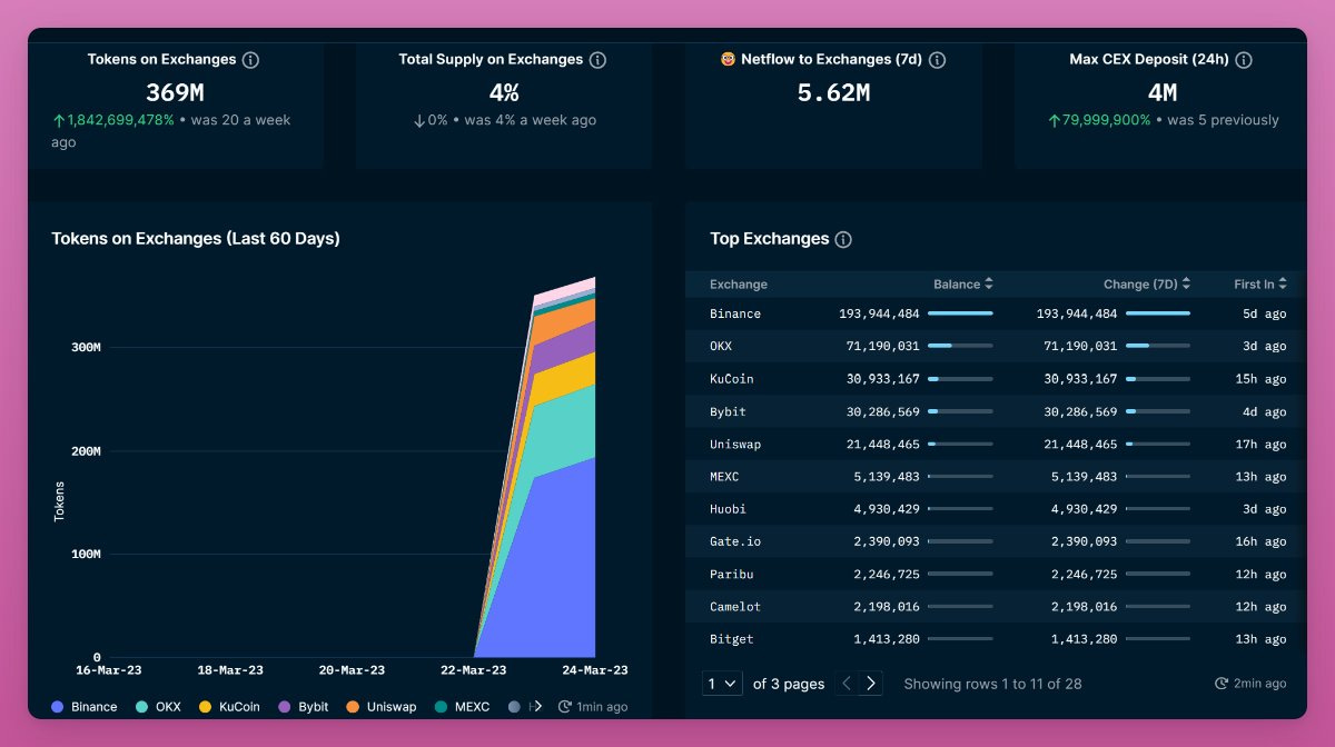 目前,總 $ARB供應量的 4% 存放在交易所(包括 DEX 流動資金池)。