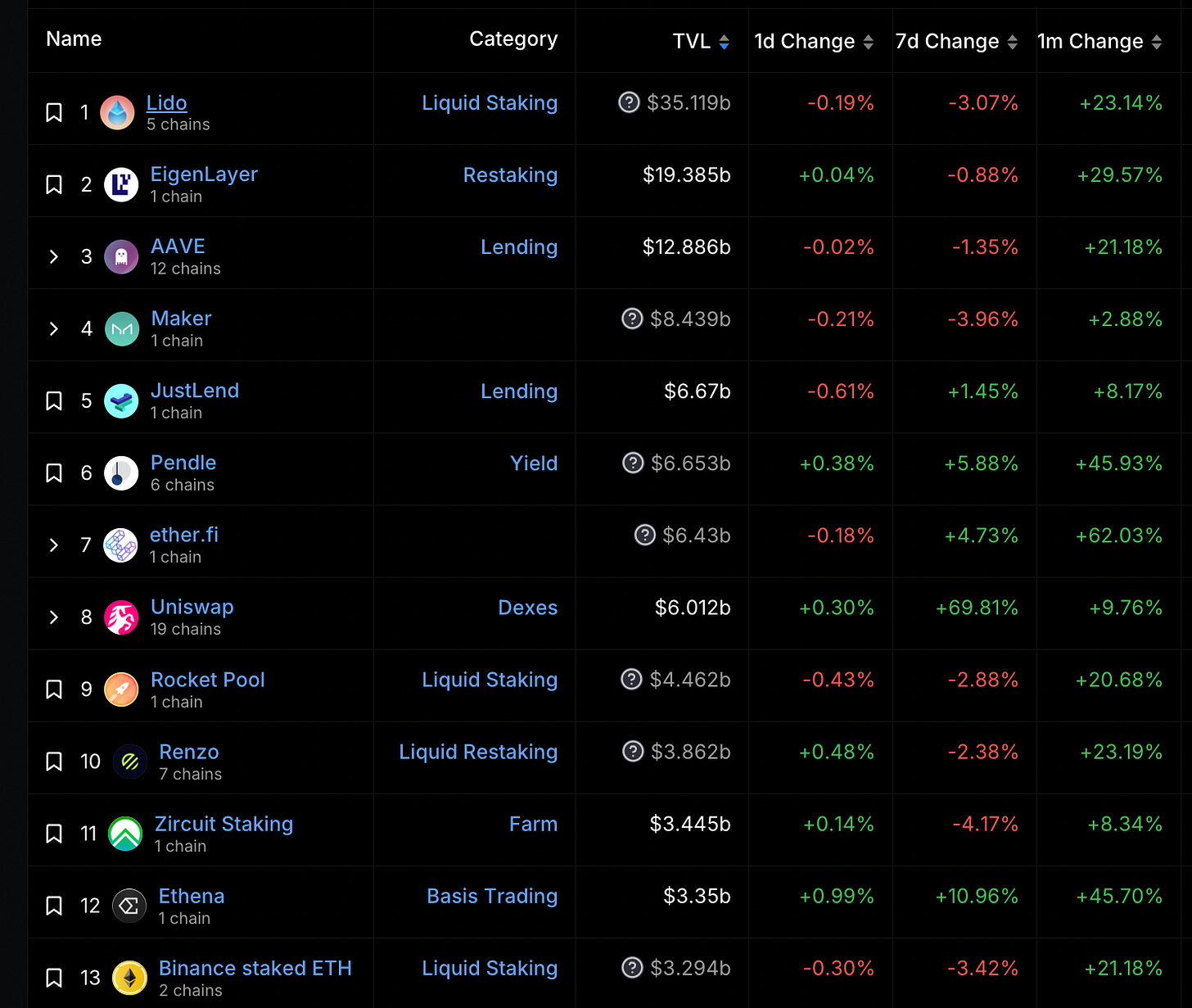 TVL 前十大項目