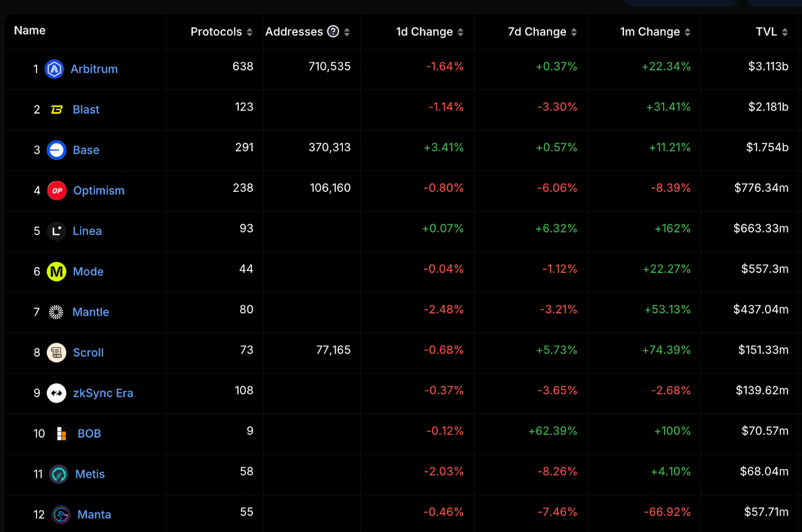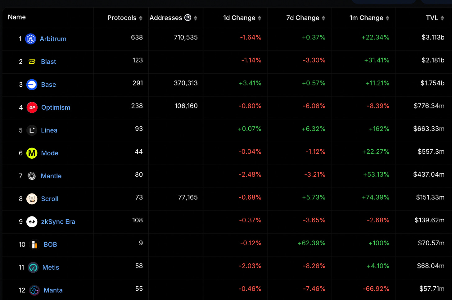 在前段 Rollups 中可以注意到 Mantle、Scroll、BOB 的 TVL 有顯著上漲。
