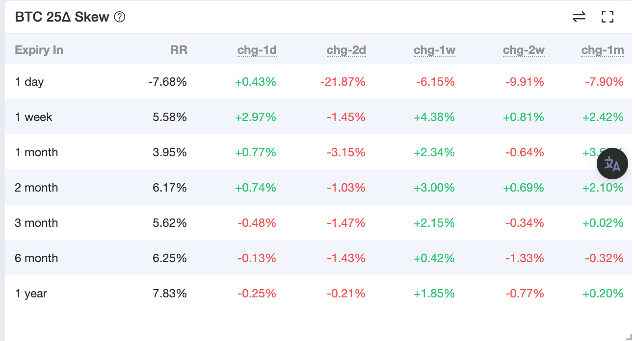25 Delta Skew:看漲看跌期權價差