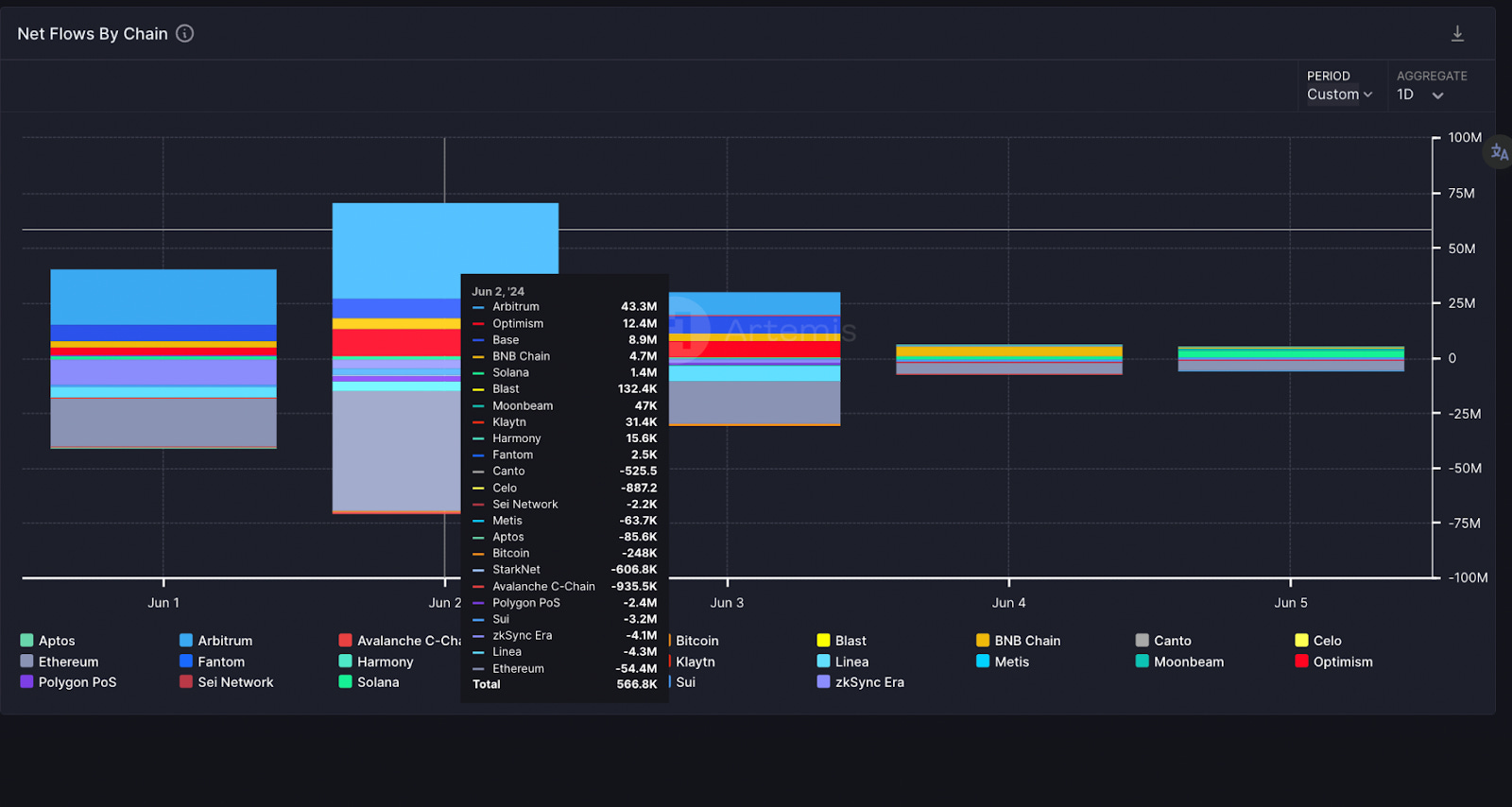 7日只有 BSC、比特幣兩條鏈有淨流入