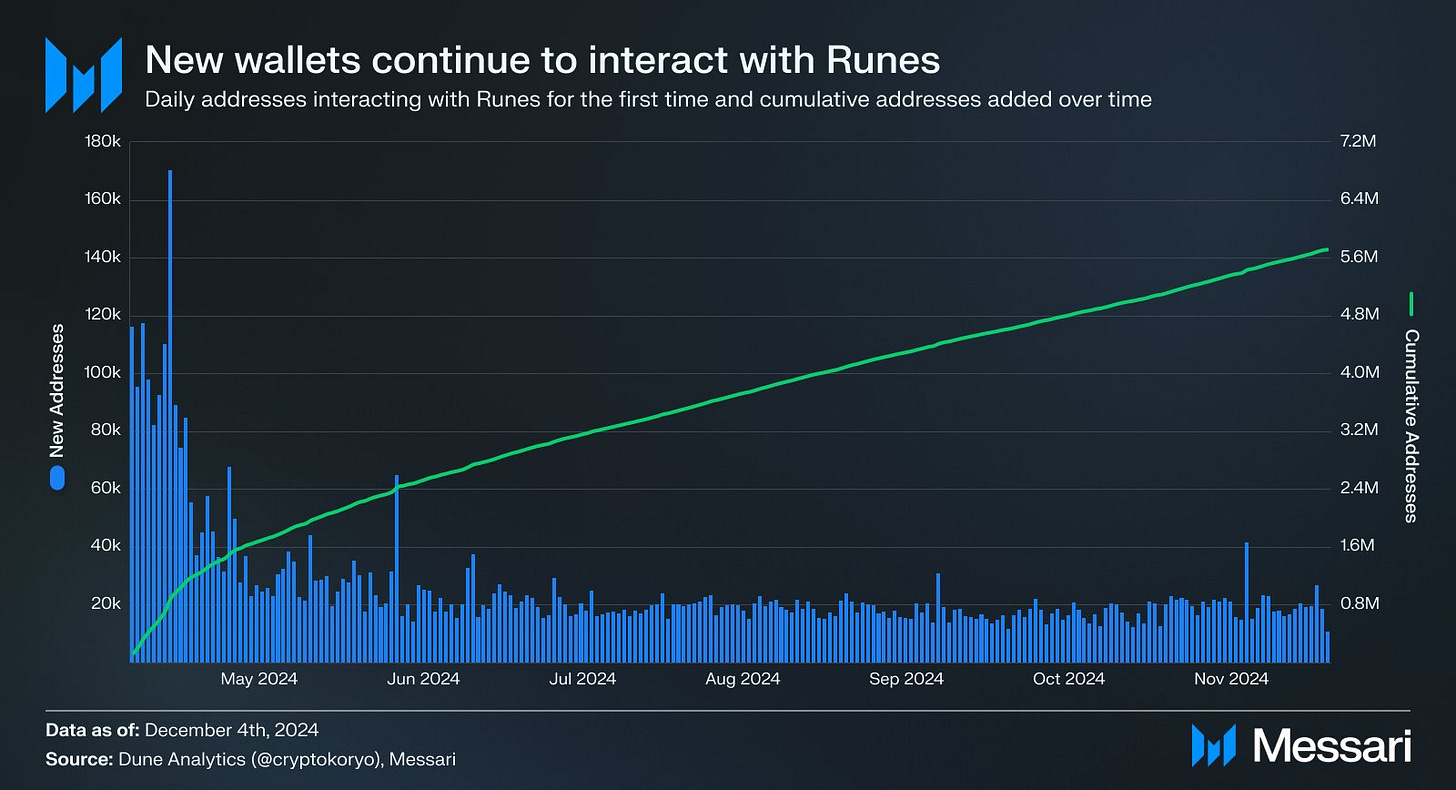 新用戶持續加入,首次與 Runes 互動的錢包地址穩步增長