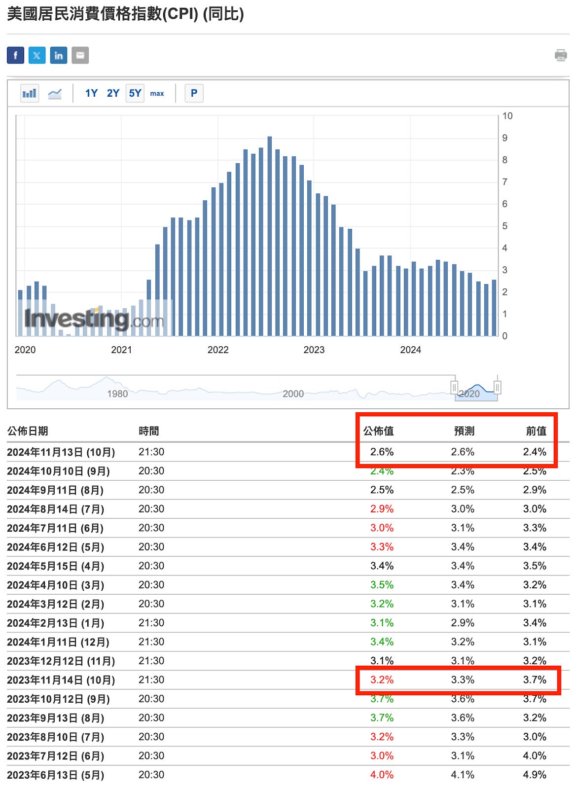 過去筆者持續強調就業數據高檔、通膨低檔才是助推降息的完美劇本,當就業市場確定穩健後我們需要持續關注通膨。本週公布的 10 月 CPI 從 2.4% 反彈至 2.6% 出現警訊,但主因為去年 10 月通膨驟降的低基期因素所致,無需太過緊張。除此之外,鮑威爾在週五談話表示預計通膨將持續降至 2.0% 目標,因此對於通膨不必過度擔憂。