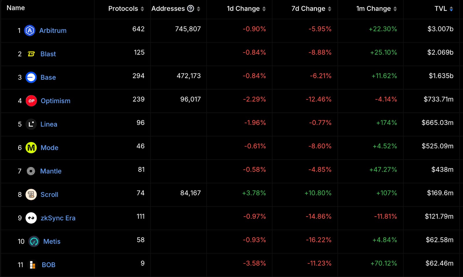 在前段 Rollups 中可以注意到 Scroll、Linea 的 TVL 有較好的表現。