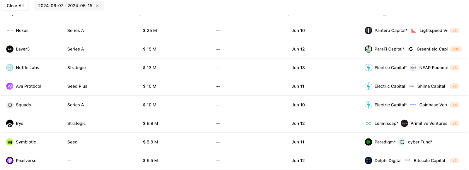 Ava Protocol(1,000 萬美金)前身為 OAK Network,致力於開發基礎設施降低 Web3 及 DeFi 項目多鏈部署的門檻,合作夥伴包括 Polkadot、Moonbeam 等 ,投資陣容中有 Polygon 創始人 Sandeep Nailwal。目前處於測試網階段,已累積超過 10,000 個錢包以及超過 1,000 的日交易次數。