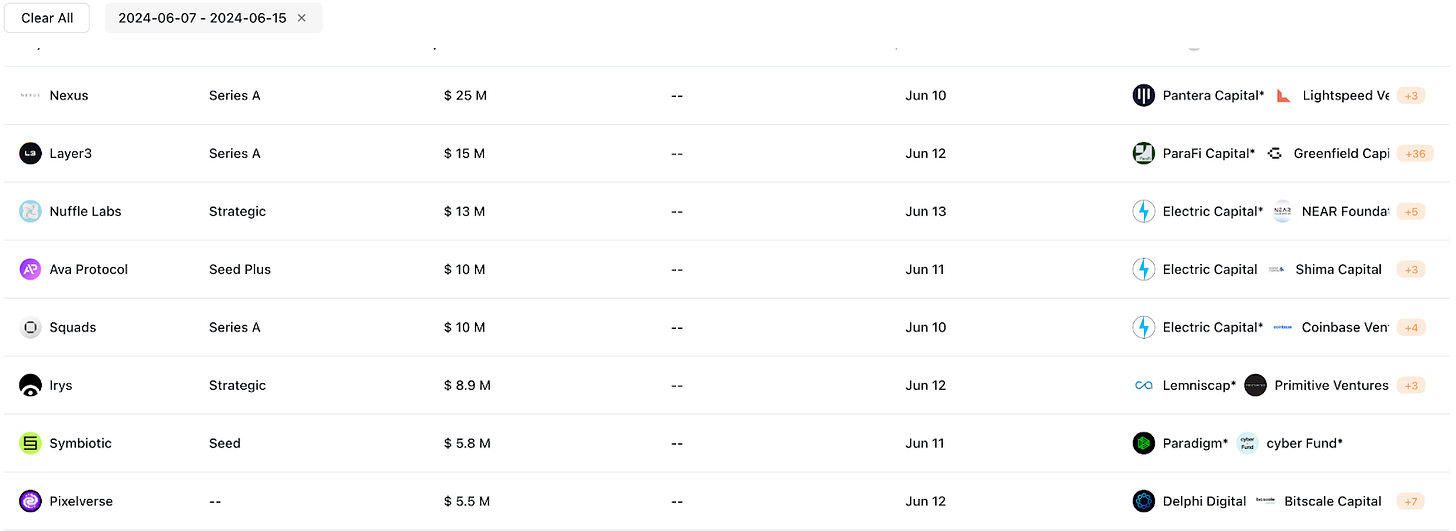 Nuffle Labs(1,300 萬美元)由 Near 基金會成立,將利用 NEAR 的產品提供數據可用性和快速最終層,加速 NEAR Protocol、以太坊、EigenLayer 生態系間的整合,實現 NEAR 在這一輪週期全力發展的全鏈佈局。