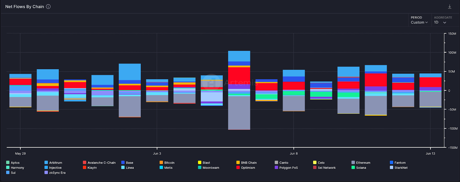 近一週持續有新的資金從以太坊主網流向 Optimism、Arbitrum、Base,回歸到先前的常態。