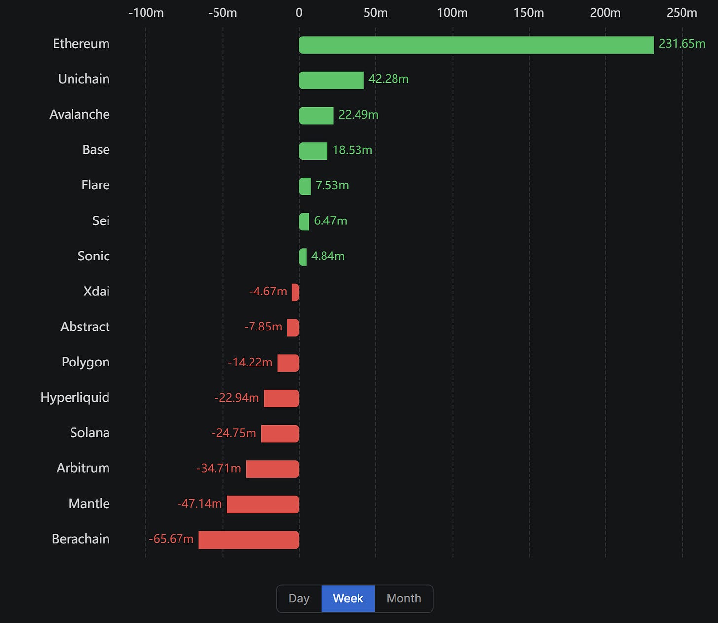 ETH 終於重回 4,000 美元關卡,ETH/BTC 漲幅超過 12%。機構透過現貨與 ETF 大量買入,結合 Fundamental Global 申請向 SEC 發行 50 億美元證券等利好基本面消息,提振市場熱度,行情有望持續。DeFi 生態回暖,Ethena、EigenLayer 等 DEX 表現亮眼,本周 TVL 均上漲約 13%,值得多加交互。Unichain + 4,200 萬