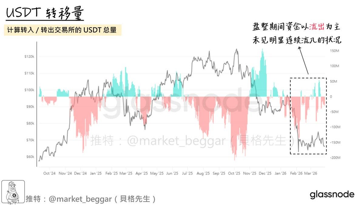USDT 轉移量顯示當前市場資金對 BTC 興致缺缺