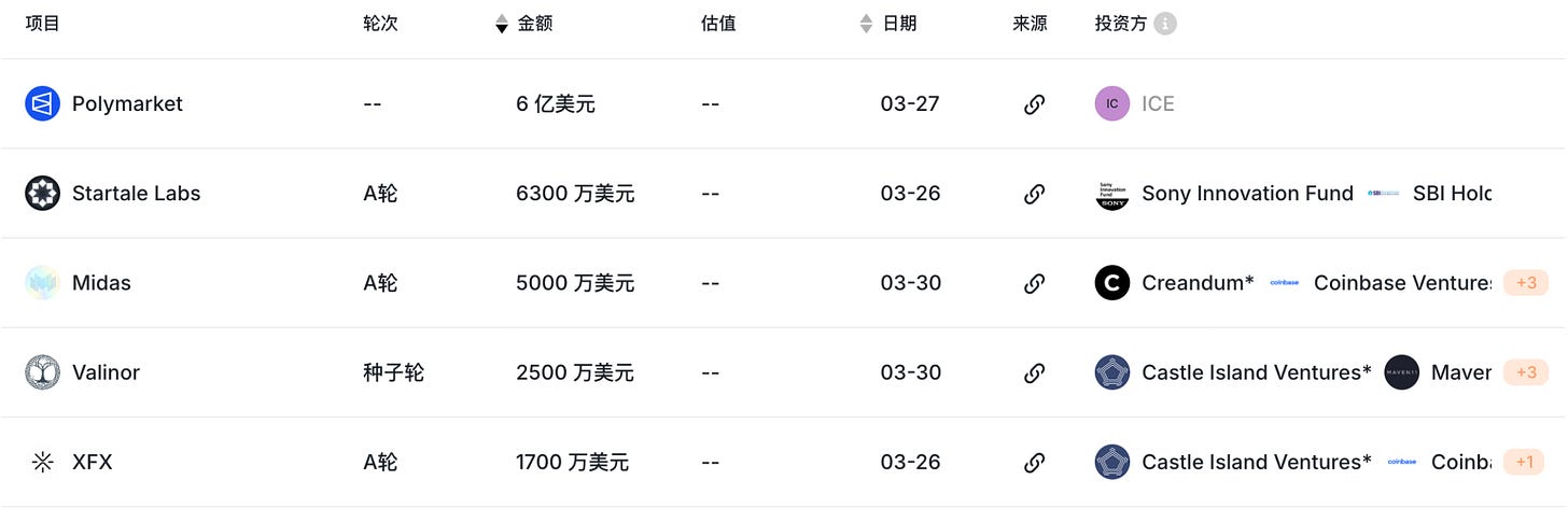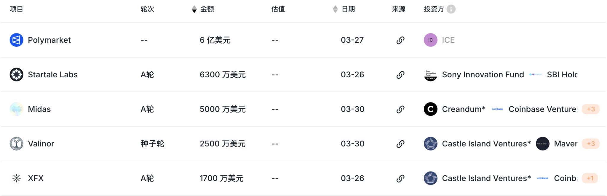 Midas(5,000 萬美元)RWA 資產代幣化平台 Midas 於 3 月 30 日宣布完成 5,000 萬美元 A 輪融資,由 Creandum 領投,Coinbase Ventures、Framework Ventures 和 Franklin Templeton 參投。