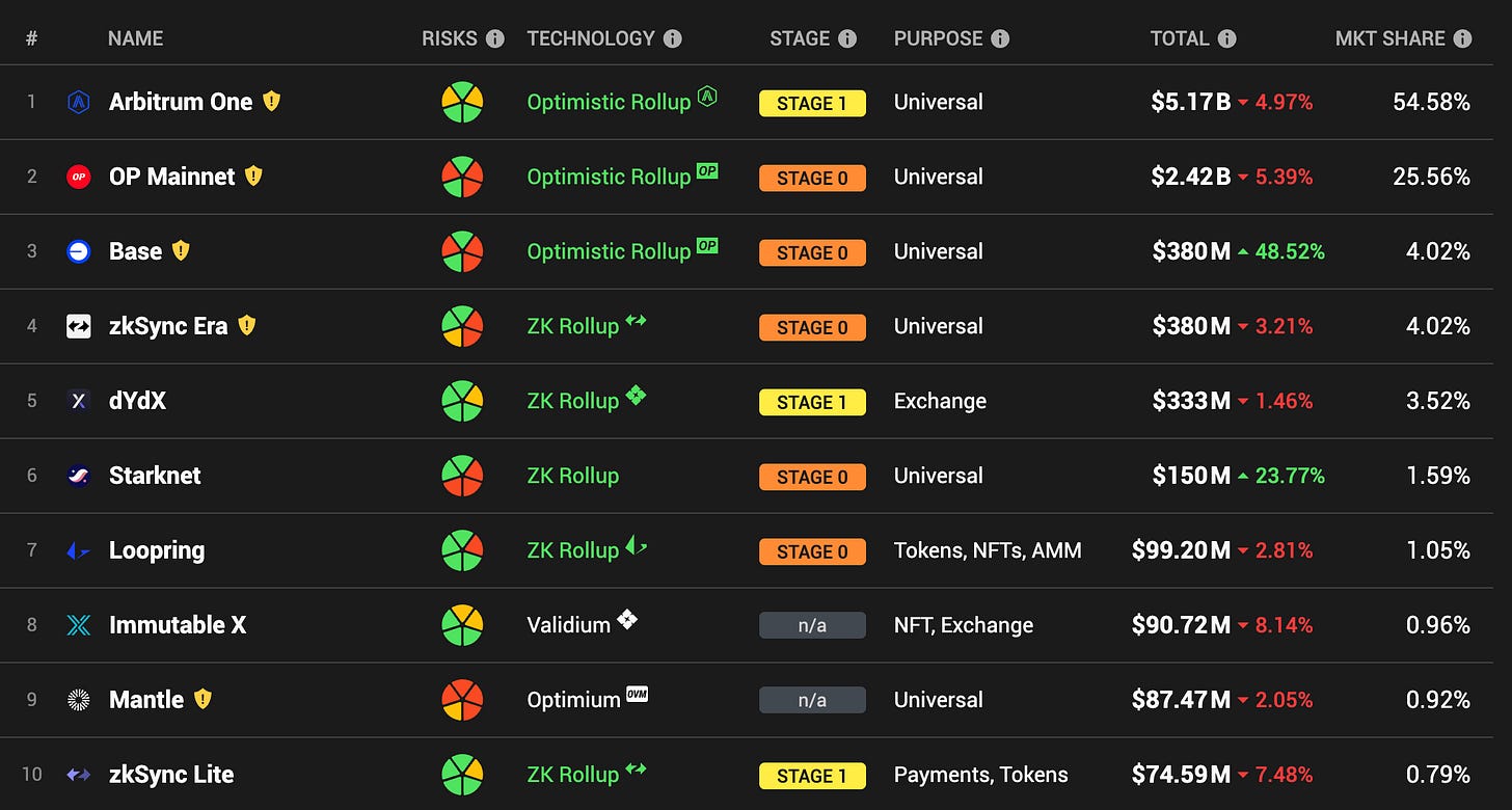 前10大公鏈/ Layer 2 總鎖倉量變化: