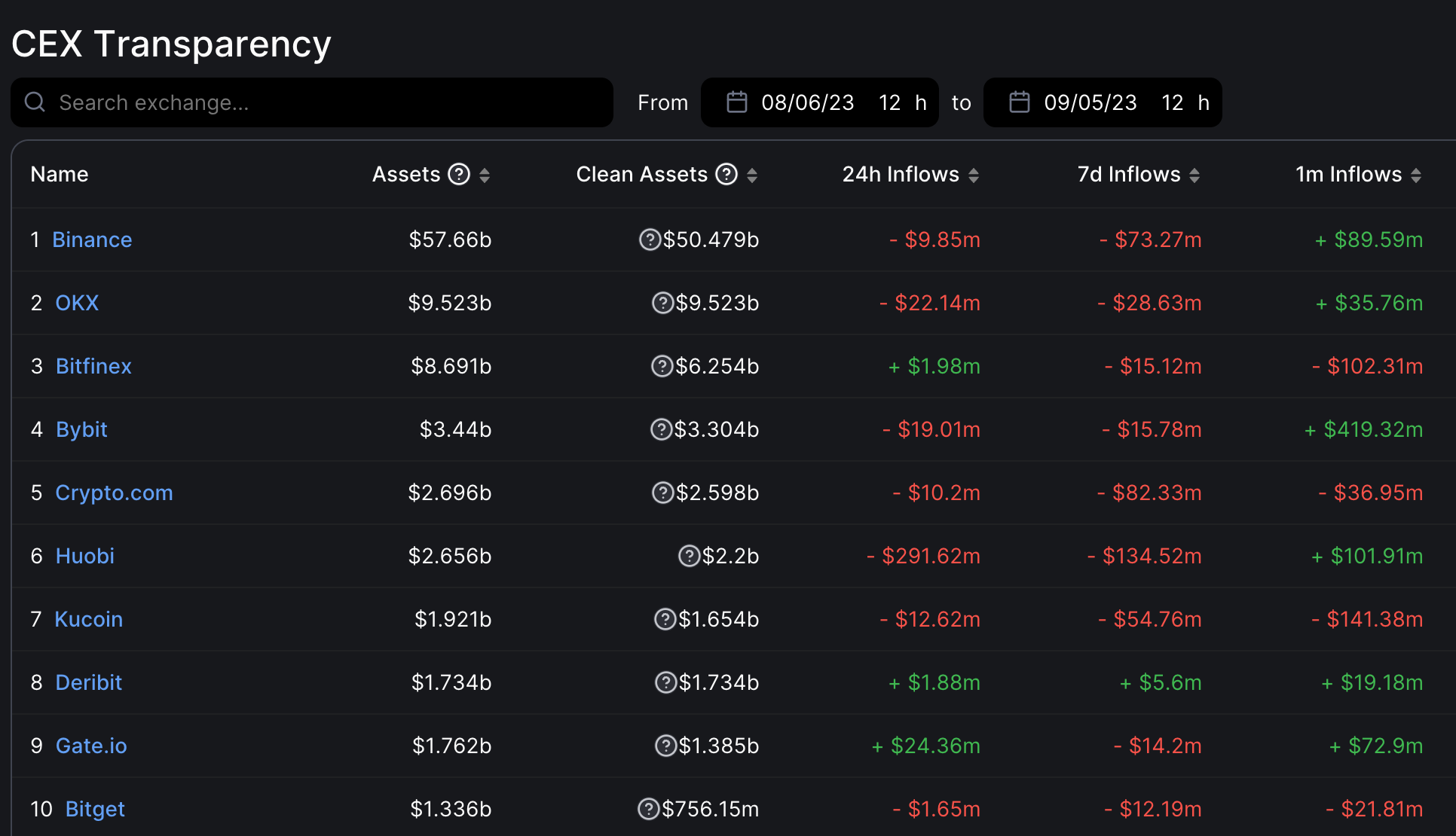 本週大多數交易所皆為資金淨流出,當中資金外流最為嚴重的為火必,七天共 1.34 億美元資產出逃,唯一正成長的是選擇權交易所 Deribit,七天淨流入 560 萬美元。