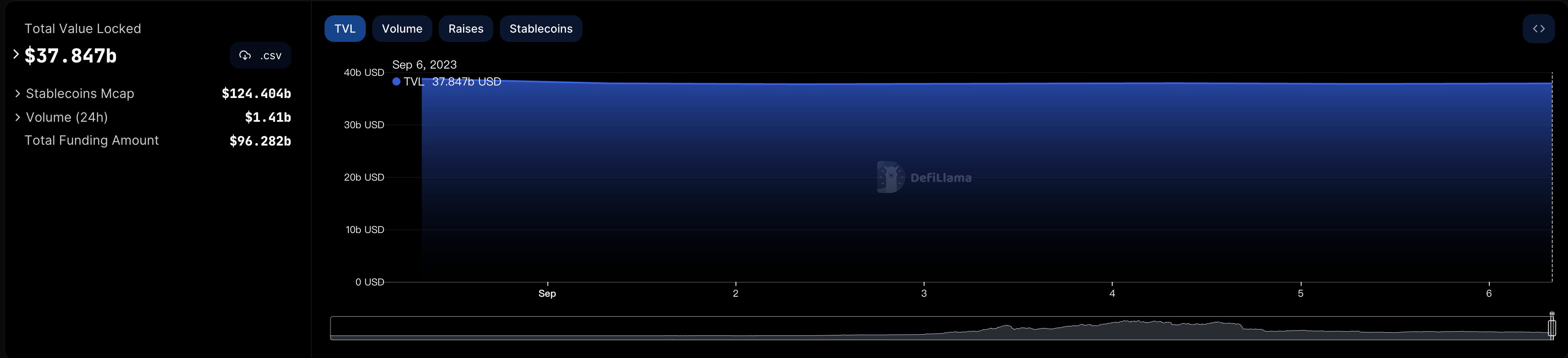 -2.49%,本週 DeFi 鎖倉量受整體市況幣價影響,微幅下降。